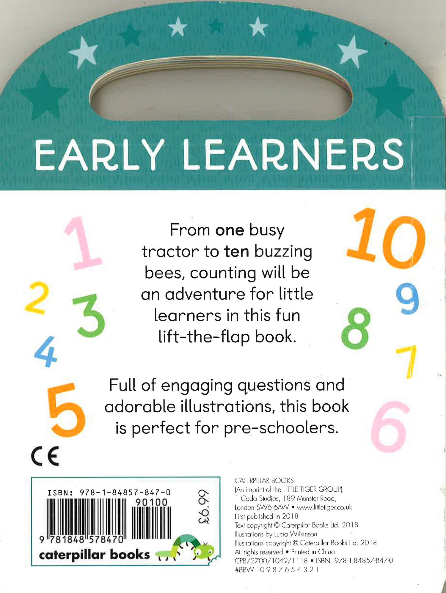 From one busy tractor to ten buzzing bees, counting will be an adventure for little learners in this lift-the-flap book. Full of angaging questions and adorable illustrations, this book is perfect for pre-schoolers.