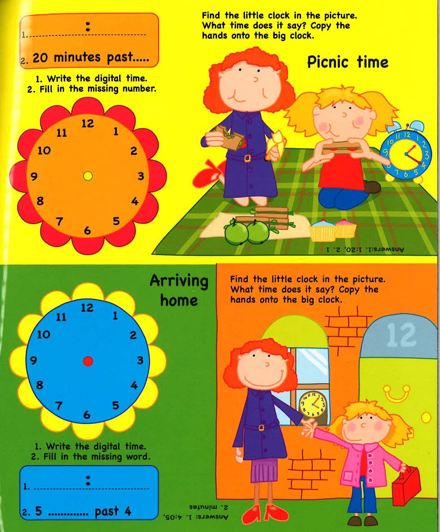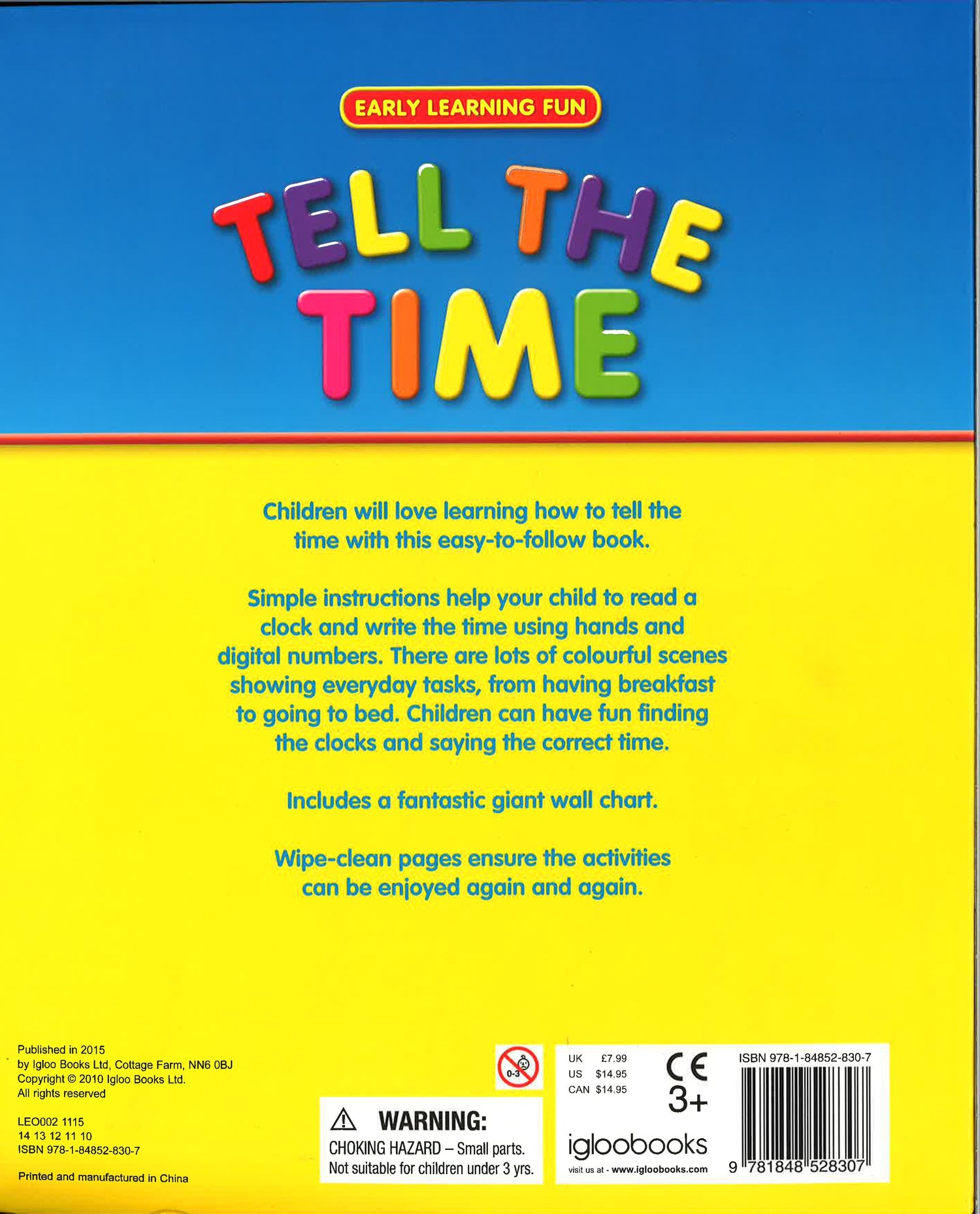 Tell The Time (Early Learning Fun) : Children will love learning how to tell the time with this easy-to-follow book. Simple instructions help your child to read a clock and write the time using hands and digital numbers. There are lots of colorful scenes showing everyday tasks, from having breakfast to going to bed. Children can have fun finding the clocks and saying the correct time. Includes a fantastic giant wall chart. Wipe-clean pages ensure the activities can be enjoyed again and again.