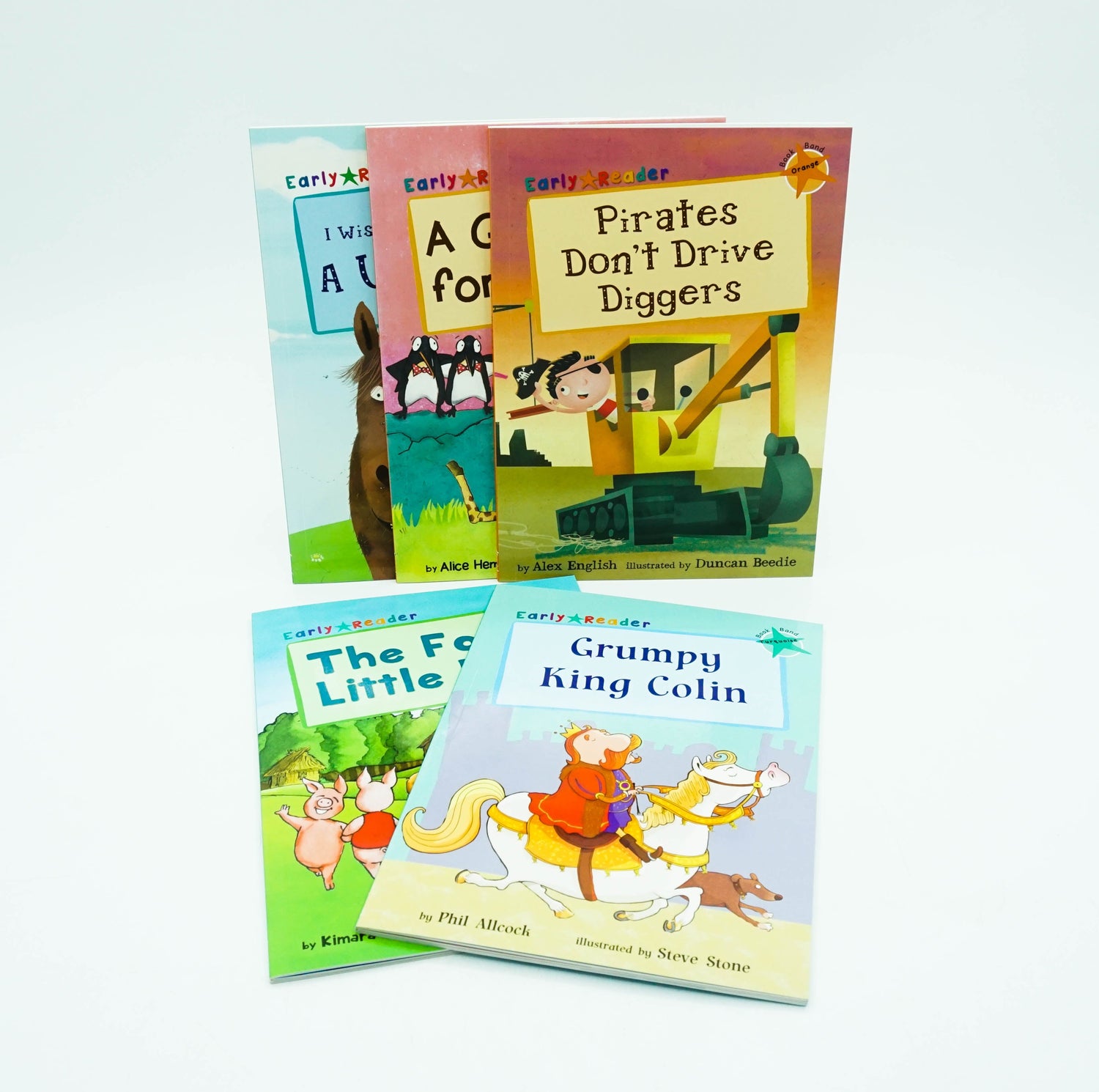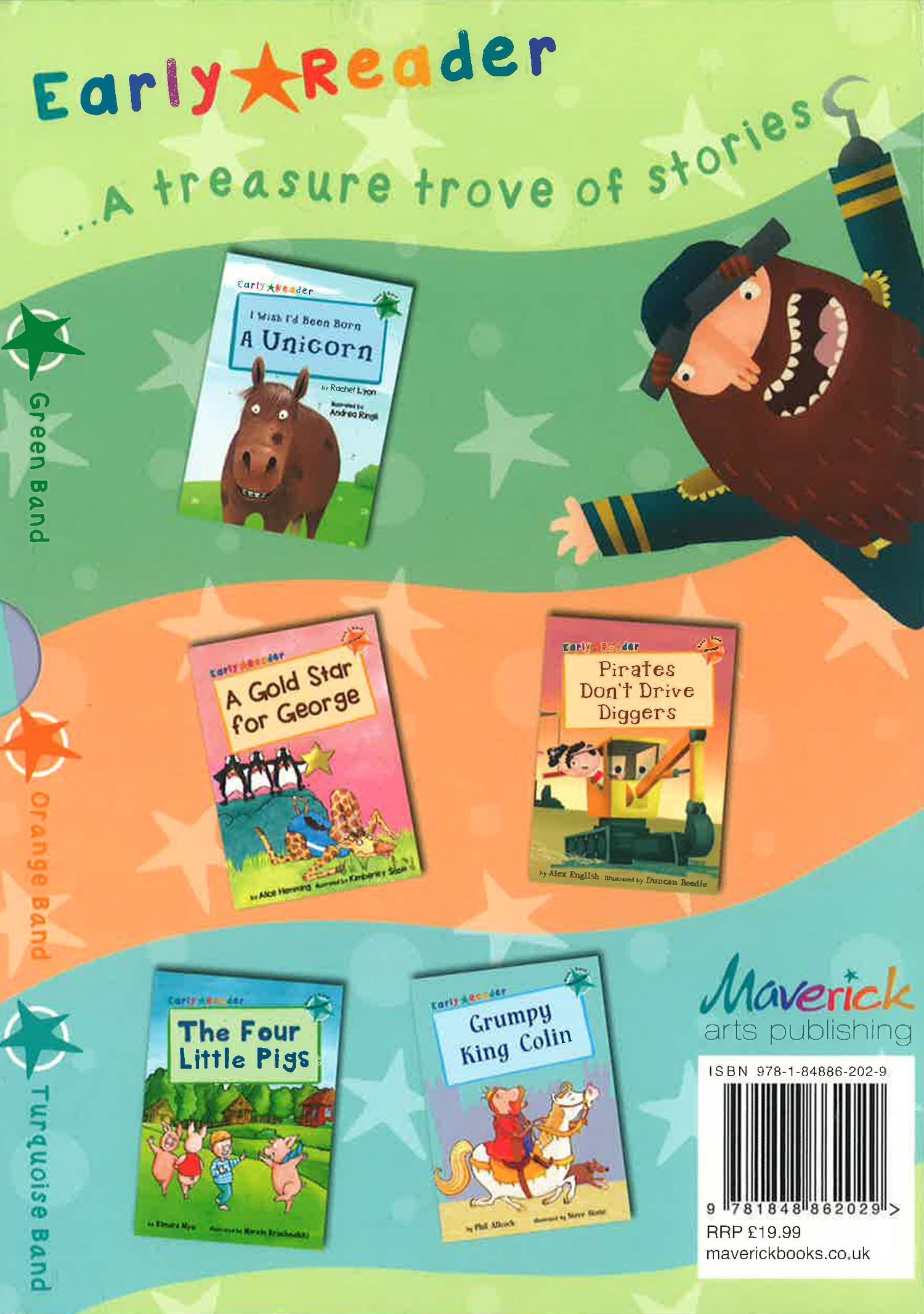 Learning to read is such a key point in a childs growth and the transition from being a listener to being a reader is not an easy one.This Books Feature Fun picture books, book banded as Early readers, we can bring the fun of the bedtime story to the classroom. The title contains 5 Books which are: I Wish I'd Been Born a Unicorn A Gold Star for George Pirates Dont Drive Diggers The Four Little Pigs Grumpy King Colin