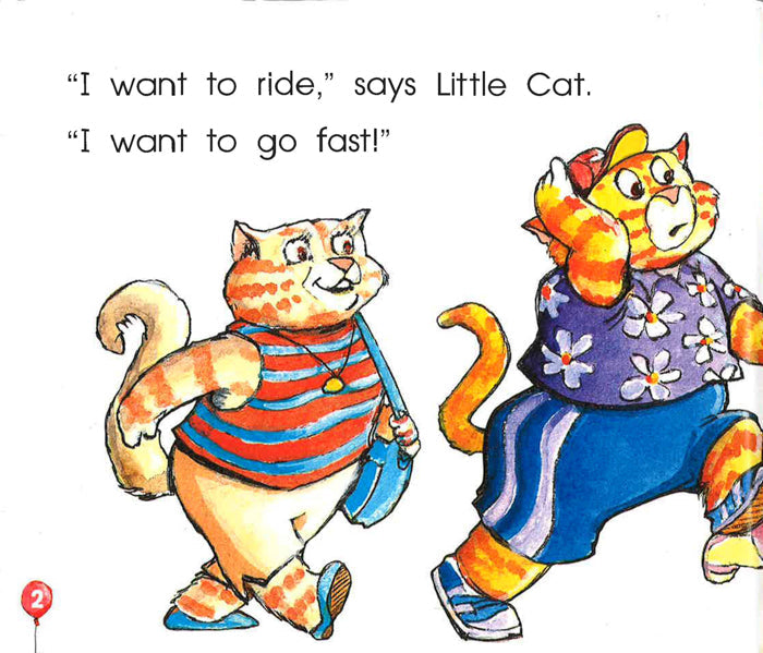 Too Slow for Little Cat Little Cat goes to the carnival with Mom and Dad. She likes fast, exciting rides. Mom and Dad do not!