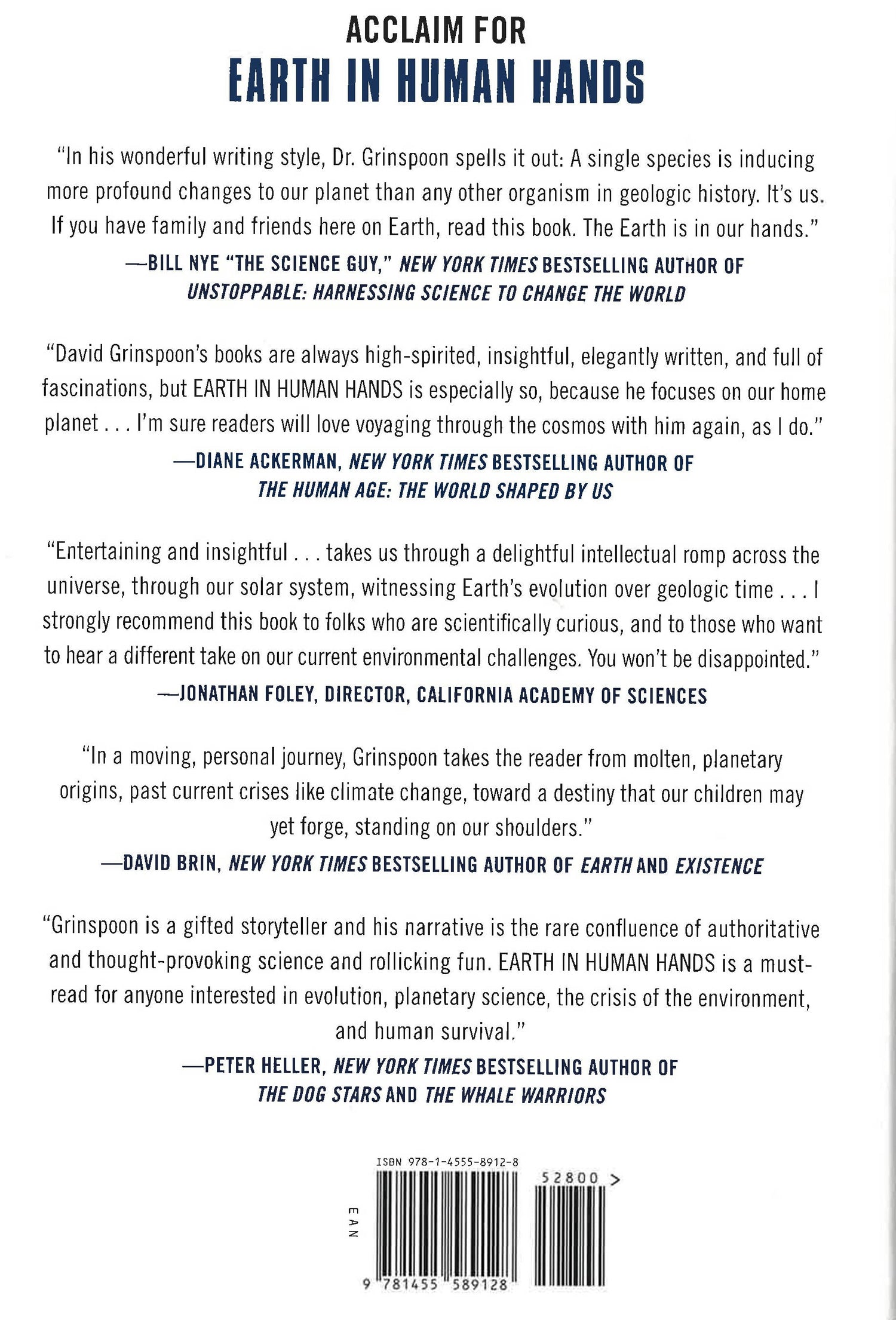 For the first time in Earth's history, our planet is experiencing a confluence of rapidly accelerating changes prompted by one species: humans. Climate change is only the most visible of the modifications we've made--up until this point, inadvertently--to the planet. And our current behavior threatens not only our own future but that of countless other creatures. By comparing Earth's story to those of other planets, astrobiologist David Grinspoon shows what a strange and novel development it is for a species to evolve to build machines, and ultimately, global societies with world-shaping influence. Without minimizing the challenges of the next century, Grinspoon suggests that our present moment is not only one of peril, but also great potential, especially when viewed from a 10,000-year perspective. Our species has surmounted the threat of extinction before, thanks to our innate ingenuity and ability to adapt, and there's every reason to believe we can do so again. Our challenge now is to awaken to our role as a force of planetary change, and to grow into this task. We must become graceful planetary engineers, conscious shapers of our environment and caretakers of Earth's biosphere. This is a perspective that begs us to ask not just what future do we want to avoid, but what do we seek to build? What kind of world do we want? Are humans the worst thing or the best thing to ever happen to our planet? Today we stand at a pivotal juncture, and the answer will depend on the choices we make.