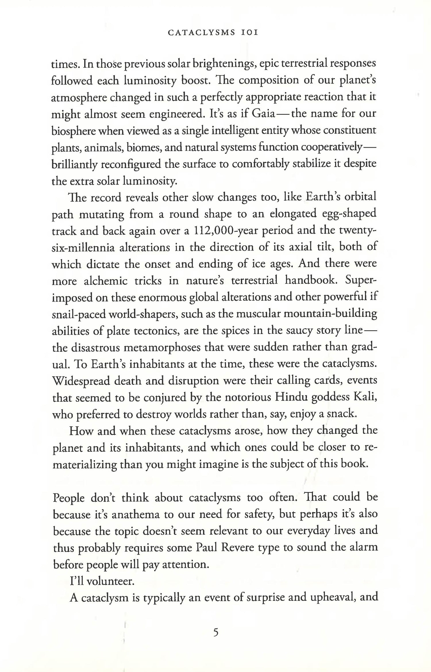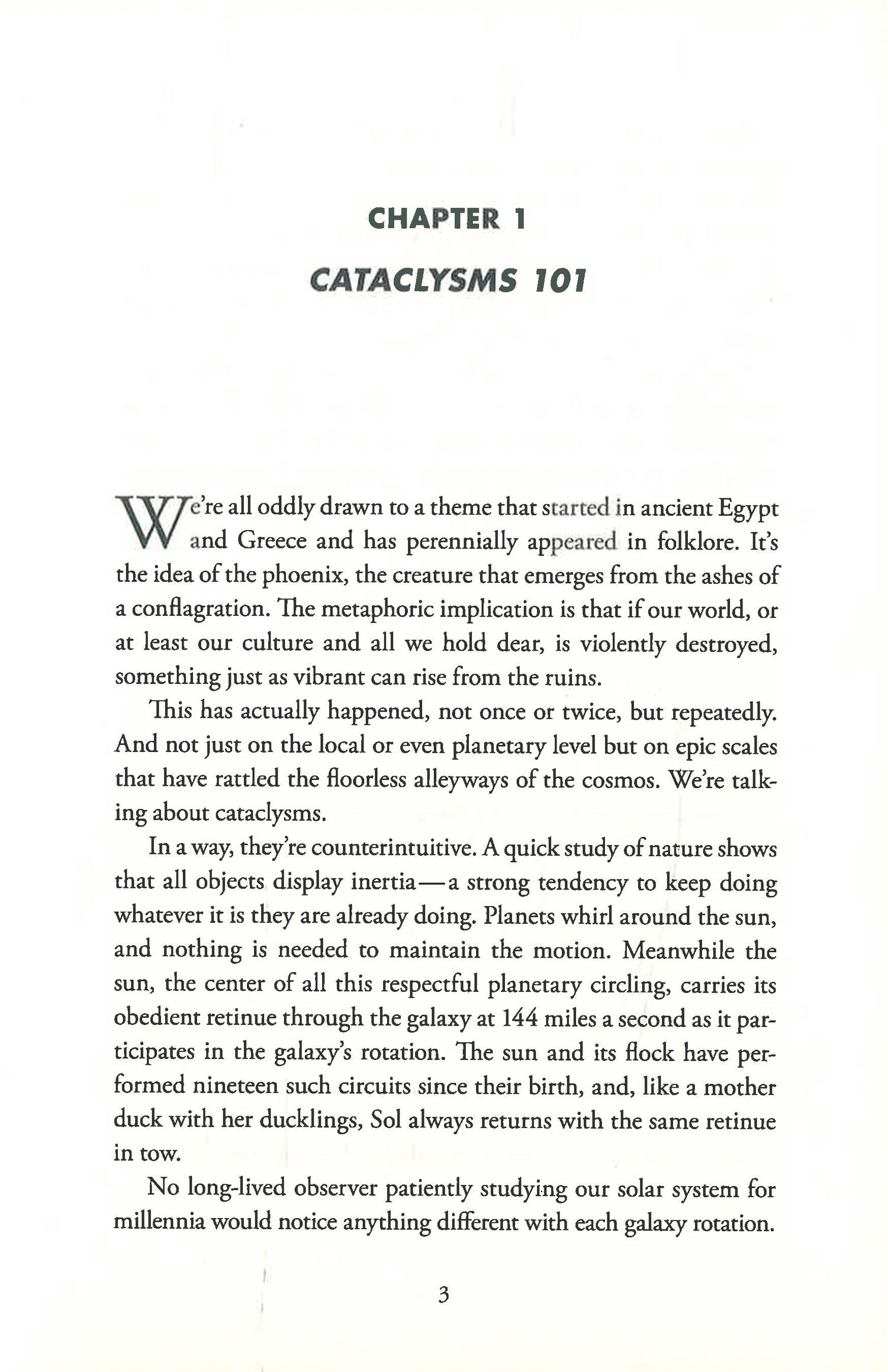 Likewise, here on Earth, existence as we know it is fragile, always vulnerable to hazards both natural and manufactured. As we've learned from textbooks and witnessed in Hollywood blockbusters, existential threats such as biological disasters, asteroid impacts, and climate upheavals have the all-too-real power to instantaneously transform our routine-centered lives into total chaos, or much worse. While we might be helpless to stop these catastrophes-whether they originate on our own planet or in the farthest reaches of space-the science behind such cataclysmic forces is as fascinating as their results can be devastating.