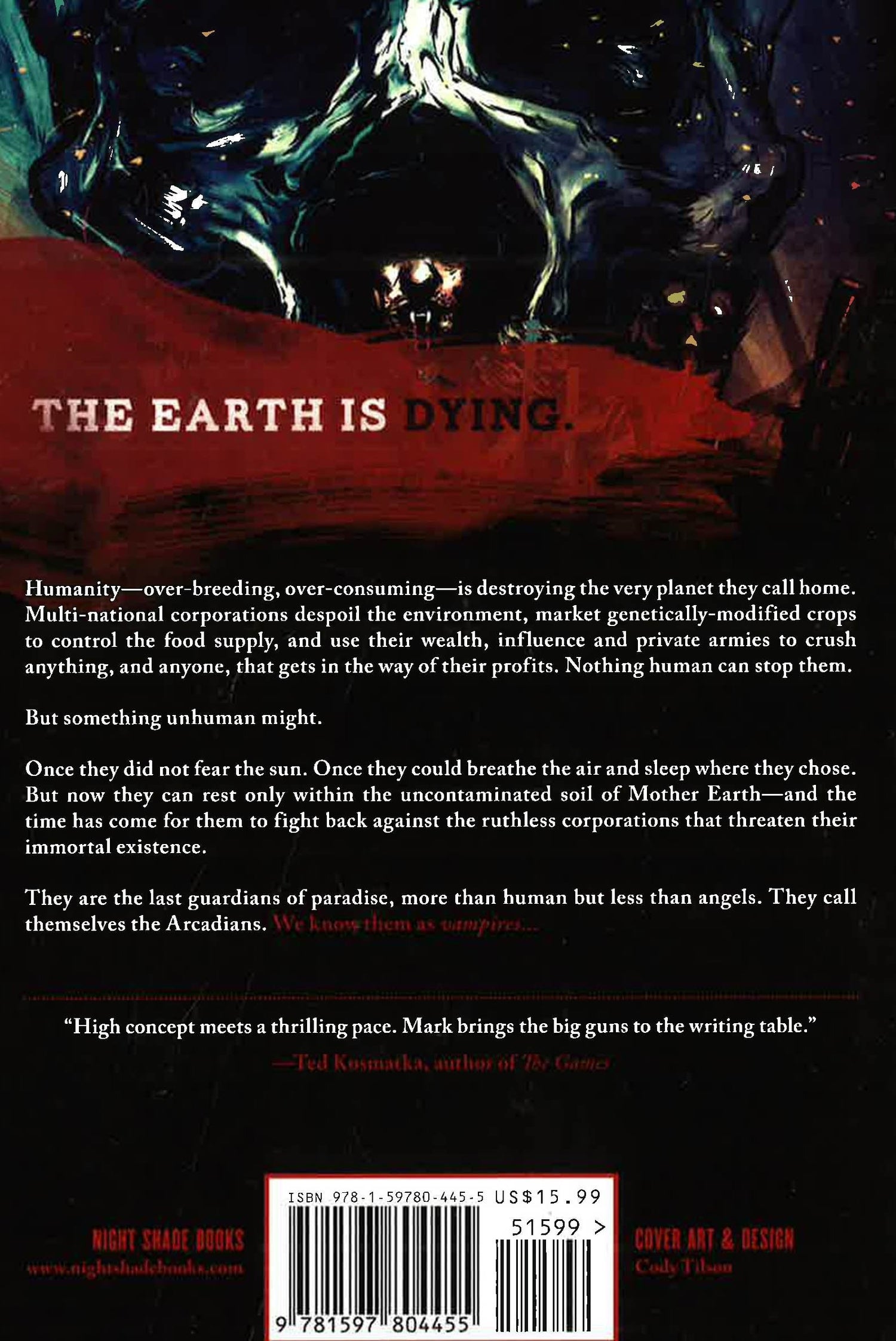 The Earth is dying. Humanity - over-breeding, over-consuming - is destroying the very planet they call home. Multinational corporations despoil the environment, market genetically modified crops to control the food supply, and use their wealth and influence and private armies to crush anything, and anyone, that gets in the way of their profits. Nothing human can stop them. But something unhuman might. Once they did not fear the sun. Once they could breathe the air and sleep where they chose. But now they can rest only within the uncontaminated soil of Mother Earth - and the time has come for them to fight back against the ruthless corporations that threaten their immortal existence. They are the last guardians of paradise, more than human but less than angels. They call themselves the Arcadians. We know them as vampires. . . .