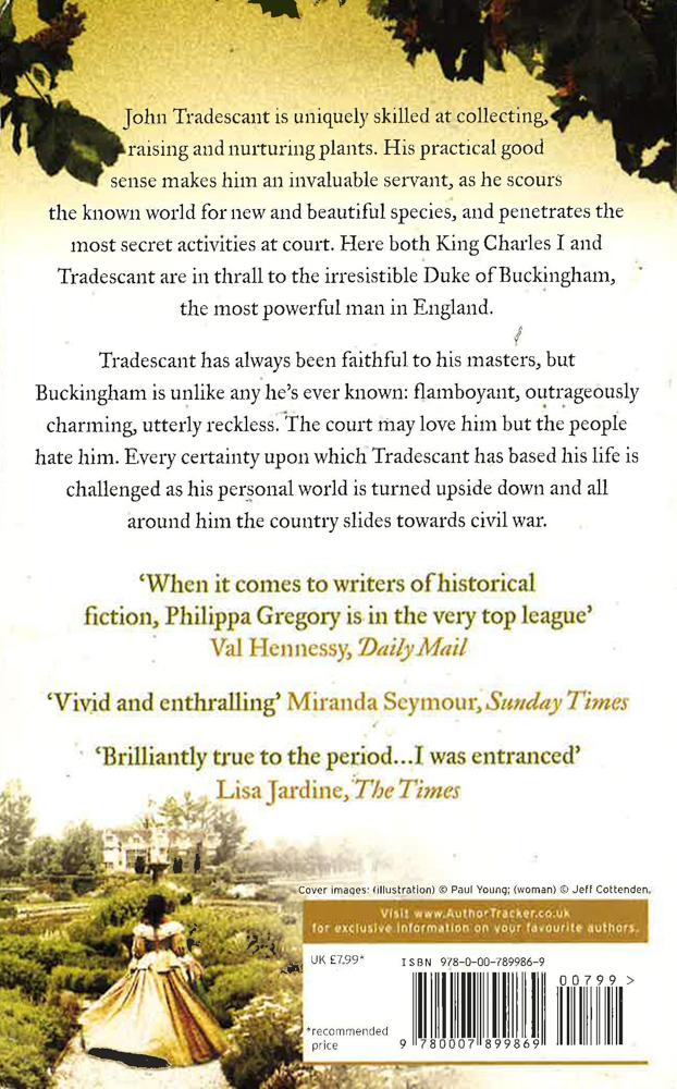 Whether he is nurturing a single rare seedling into a blossoming tree or planning acres of exquisitely conceived royal gardens, John Tradescant's fame and skill as a gardener are unsurpassed in seventeenth-century England. But it is Tradescant's clear-sighted honesty and loyalty that make him an invaluable servant, and in his role as informal confidant during garden strolls with Sir Robert Cecil, adviser to King James I, he witnesses the making of history, from the Gunpowder Plot to the accession of King Charles I and the growing animosity between Parliament and court. Tradescant's talents soon come to the attention of the most powerful man in the country, the irresistible Duke of Buckingham, the lover of King Charles I. Tradescant has always been faithful to his masters, but Buckingham is unlike any he has ever known: flamboyant, outrageously charming, and utterly reckless. Every certainty upon which Tradescant has based his life -- his love of his wife and children, his passion for his work, his loyalty to his country -- is shattered as he follows Buckingham to court, to war, and to the forbidden territories of human love.
