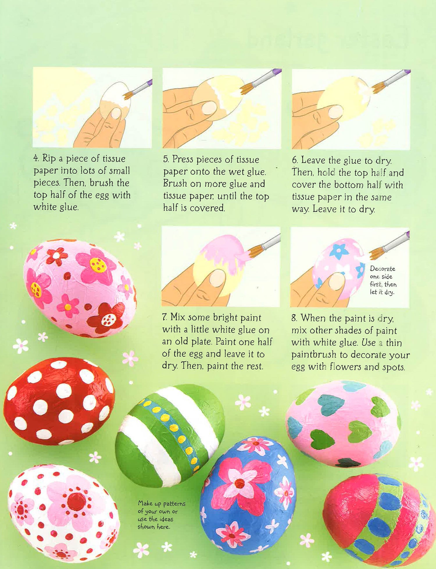 This is an activity book with projects such as designing a pop-up chick card, decorating eggs, drawing Easter bunnies and lambs, and simple Easter recipes. There are step-by-step instructions and photographs of each project.