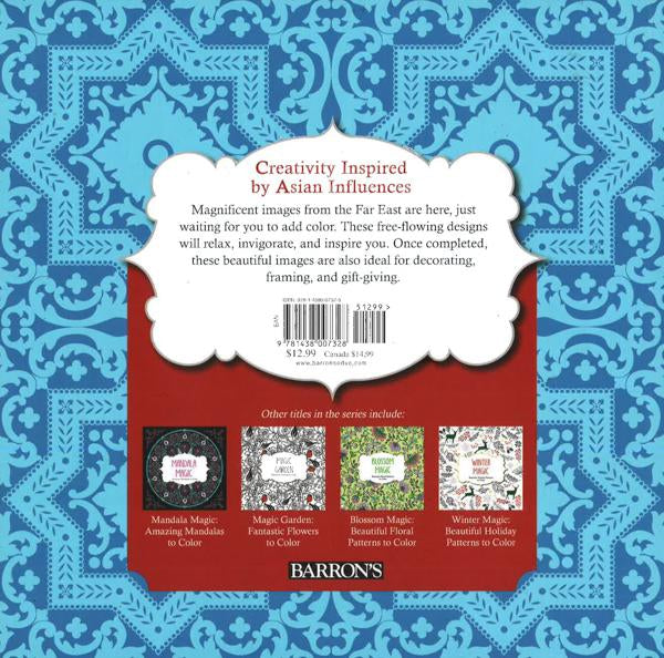 New from the bestselling Color Magic series! This meditative coloring book melds the youthful joy of coloring with the sophisticated composition of distinct patterns, for a relaxing artistic experience that is open to everyone. Coloring encourages us to take a break from our daily routines and create something simple yet exquisite. Plus, once you complete these beautiful images, they are ideal for decorating, framing, and gift-giving. In Eastern Magic, the magical Far East is here, with glorious pictures of peacocks, lotus blooms, dragons, and more to color and share.