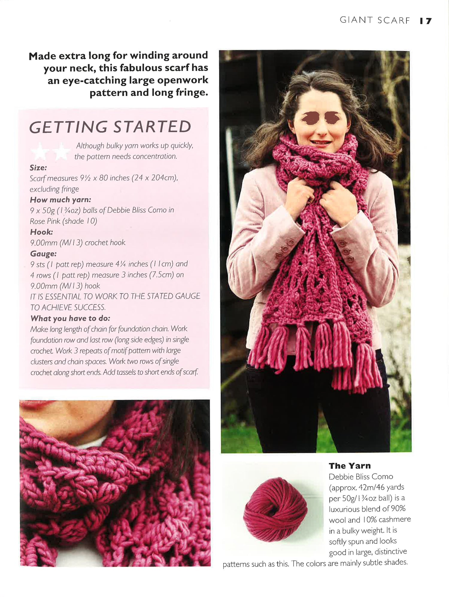 Want to swap the yarn? No problem! In addition to listing the specific yarn used, the key characteristics that make it suitable for the project are described, making it easier for you to make yarn substitutions.