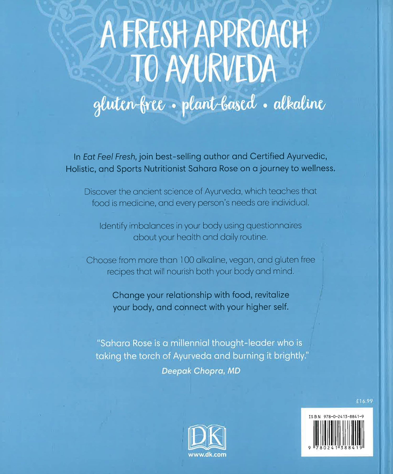 Bring your body into balance with over 100 healing recipes for a modern Ayurvedic lifestyle.The ancient science of Ayurveda teaches that food is divine medicine with the power to heal, and that the best foods for one person may not be beneficial to another. Unlike many diets with rigid, one-size-fits-all guidelines, Ayurveda is a lifestyle that recognizes the ever-changing needs of each individual.Join author Sahara Rose on a journey to wellness, identifying your specific mind-body type, and finding out which foods are best for you. Learn how the season and climate affect your digestion and how to adjust your diet accordingly. You'll focus on food qualities, not calories, and on food tastes, not macronutrients - and you'll feel better than ever.Explore more than 100 plant-based, gluten-free recipes for every meal of the day, including contemporary twists on classic Ayurvedic dishes, such as turmeric-ginger kitchari. Packed with practical guidance and beautiful photography, Eat Feel Fresh integrates traditional Ayurvedic wisdom with modern nutritional science, inviting you to change your relationship with food and connect to your highest self.