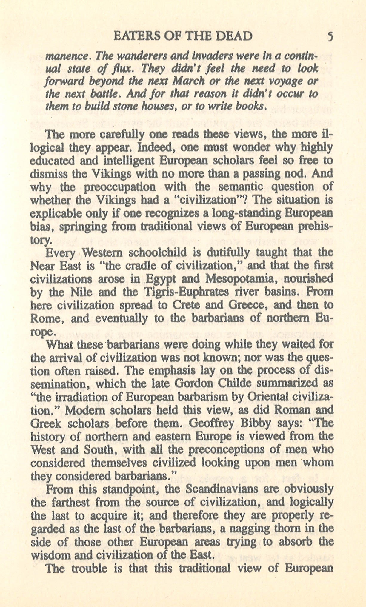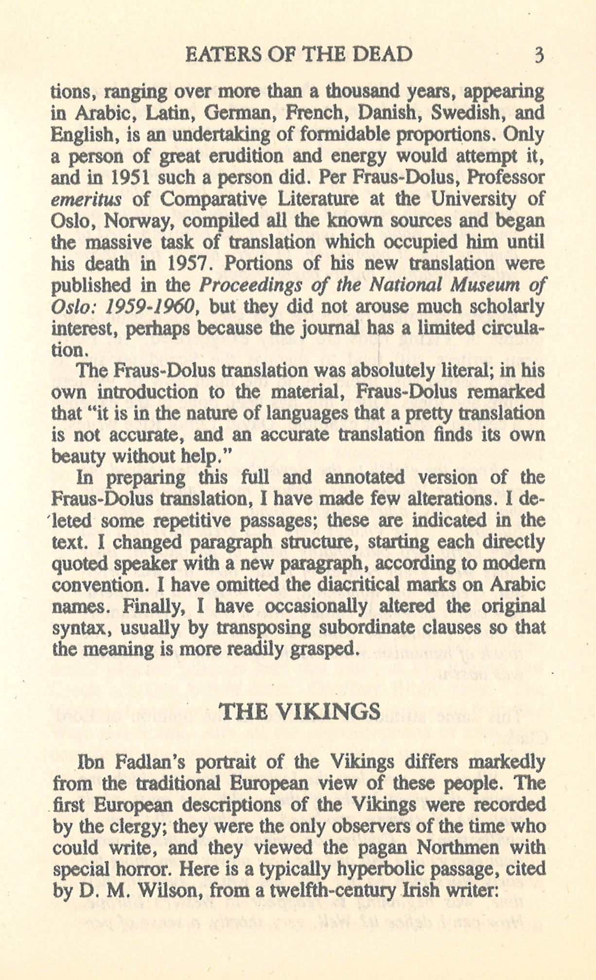 The Eaters of the Dead is a brilliant, stirring tale of historical adventure which deserves a place on readers bookshelves alongside Michael Crichton's bestselling techno-thrillers. It is AD922 and Ibn Fadlan is sent north from Baghdad as a peaceful ambassador. But before he reaches his destination, he falls in with some Vikings and when they are attacked by mystical bloodthirsty creatures in the midst of a terrible fog, he reluctantly agrees to become the prophesied 13th warrior in order for them to survive.Later turned into a major Hollywood film, Eaters of the Dead is an imaginative and breathlessly exciting retelling of the Beowulf myth that rescues the story from dry academic analysis and resurrects it as an action-packed story of adventure.