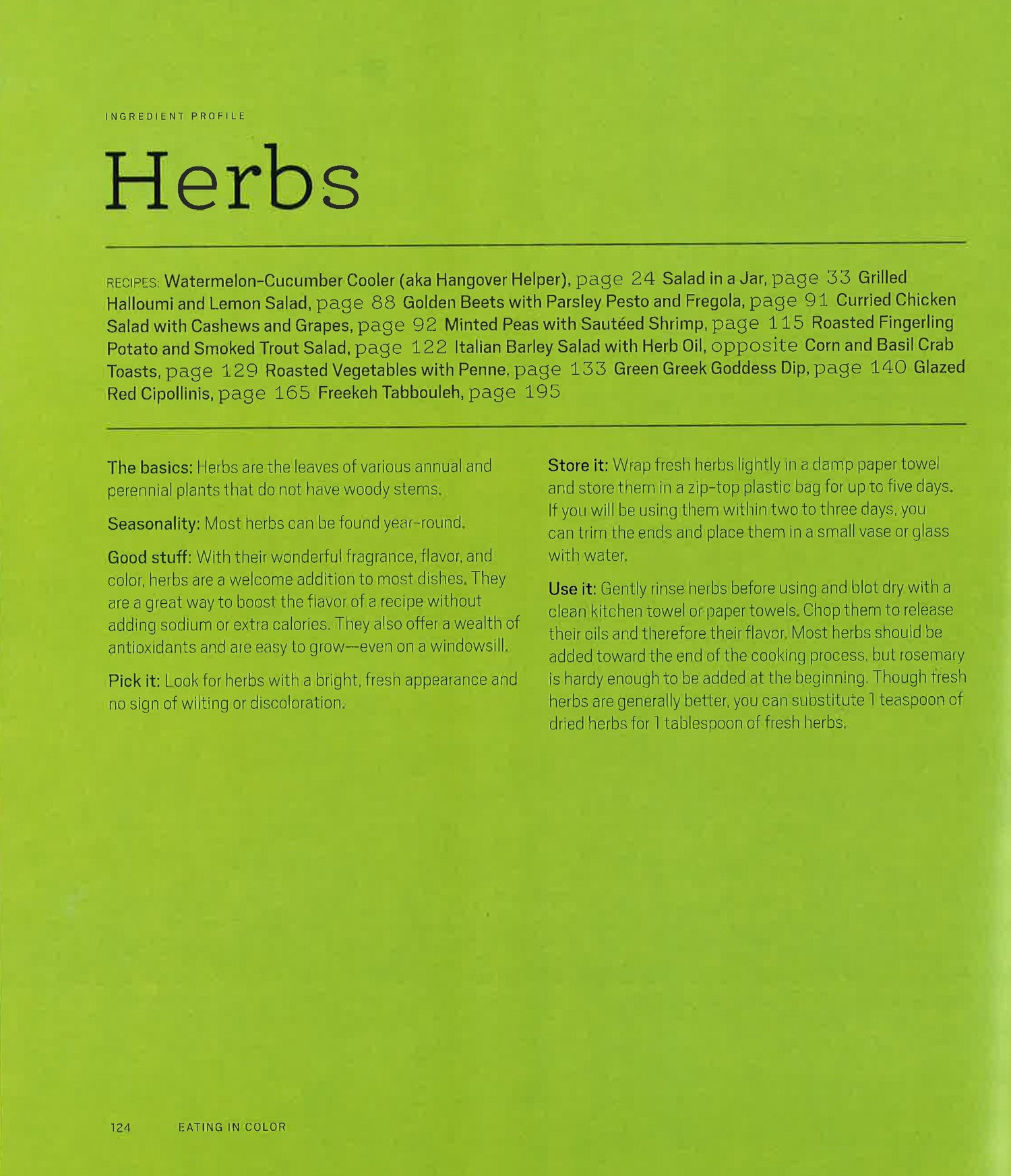 In Eating in Color, registered dietician and best-selling cookbook author Frances Largeman-Roth offers home cooks an accessible plan for utilising the colour spectrum to create an eating plan that brings more vividly-coloured food to the table. Rather than preaching a strict vegan or vegetarian lifestyle, her plan is all about eating well while eating healthy. Eating in Color showcases the colourful, delicious foods that have been shown to reduce the risk of heart disease and stroke, some cancers, diabetes and obesity--beetroot, avocado, tomatoes, kale, farro, blueberries and more. Largeman-Roth provides clear instructions for how to prepare each ingredient, how long each fruit or vegetable can be stored without losing its freshness and what its special nutritional features are.