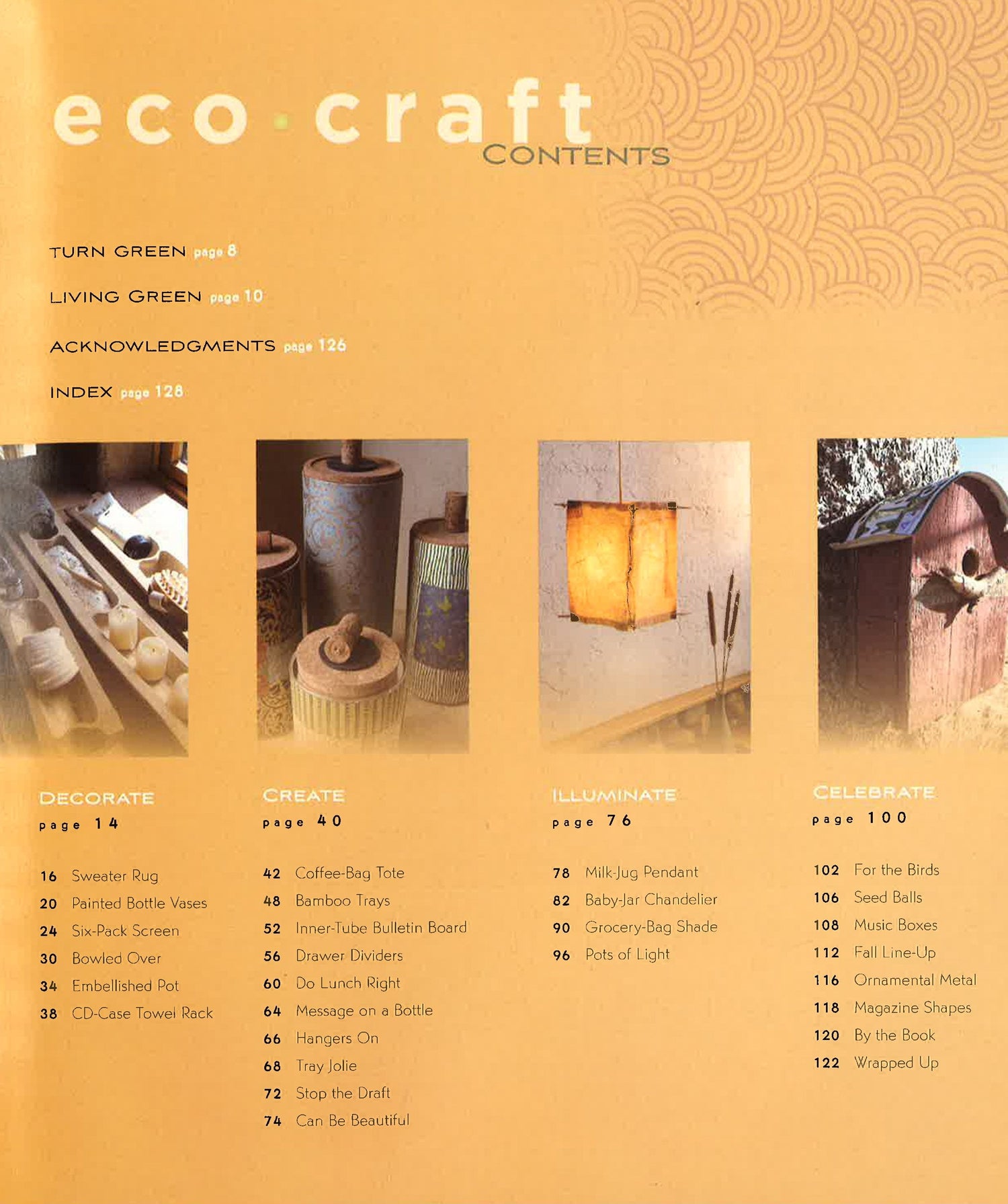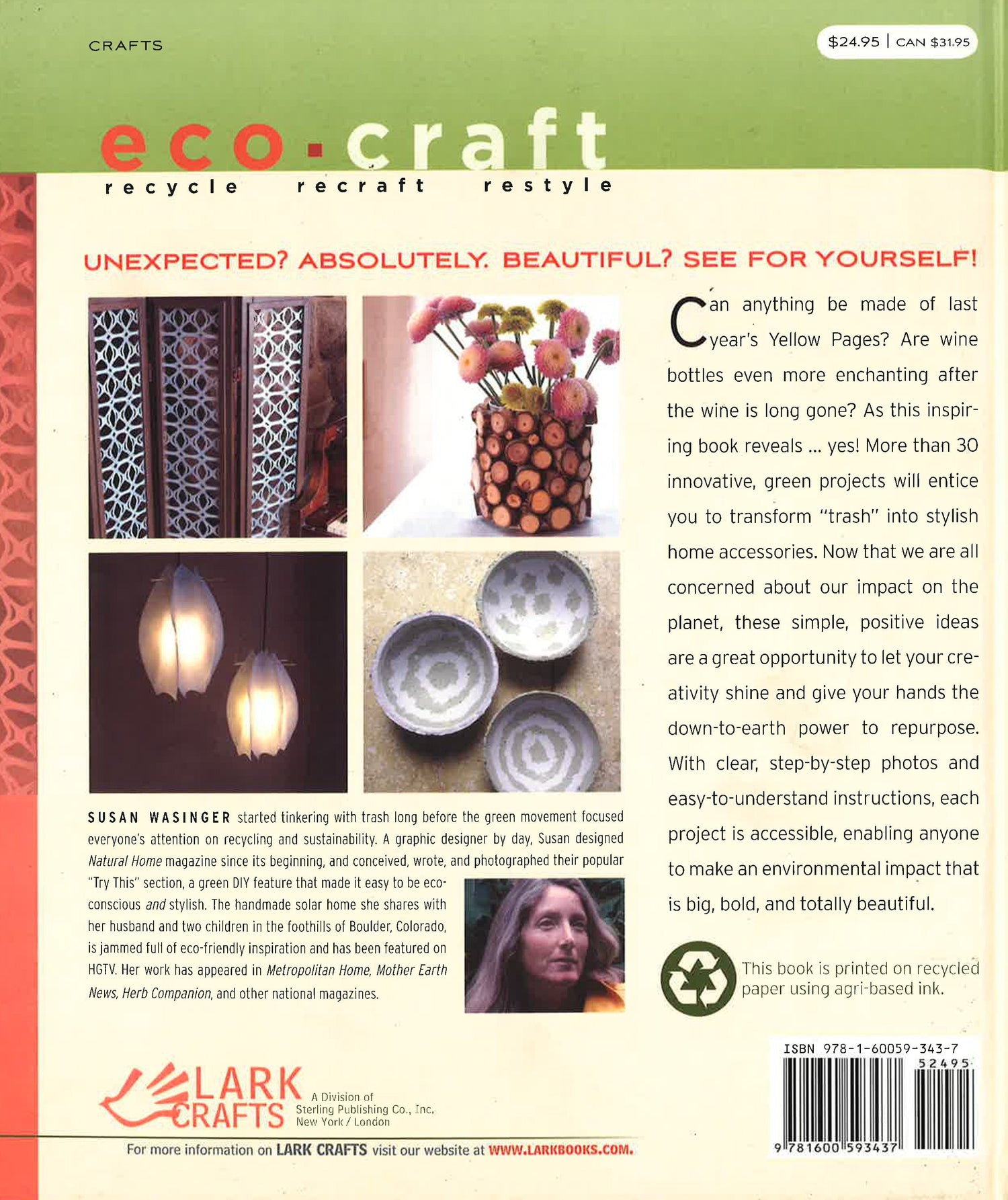 Who knew taking care of the planet could look so good? Eco Craft shows how, with 30 truly beautiful home projects that elevate environmental consciousness to stylish new heights. Every idea is amazingly clever: who would ever have imagined that plastic six-pack can holders could become a chic Moorish-inspired filigree tri-fold screen? Or that glass baby food jars would make a charming candle chandelier? Every project features at least one beauty shot in a modern home setting, easy-to-follow instructions, and step-by-step color photos, while handy icons spotlight the key techniques, materials, and the estimated time to complete each project.