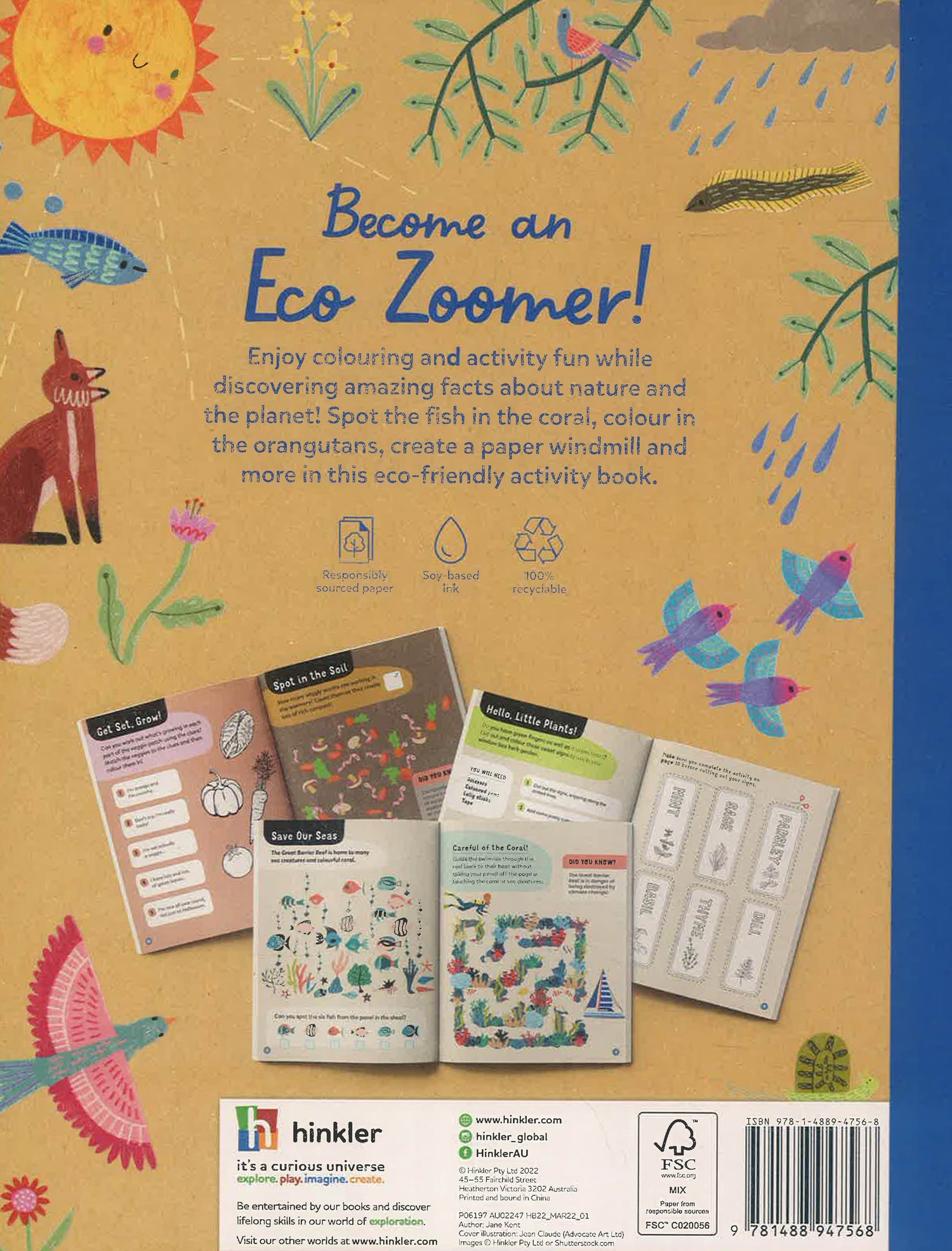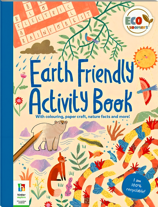 Become an Eco Zoomer! This 100% recyclable activity book features games, puzzles, crafts and more that teach kids fun facts about recycling and sustainability.