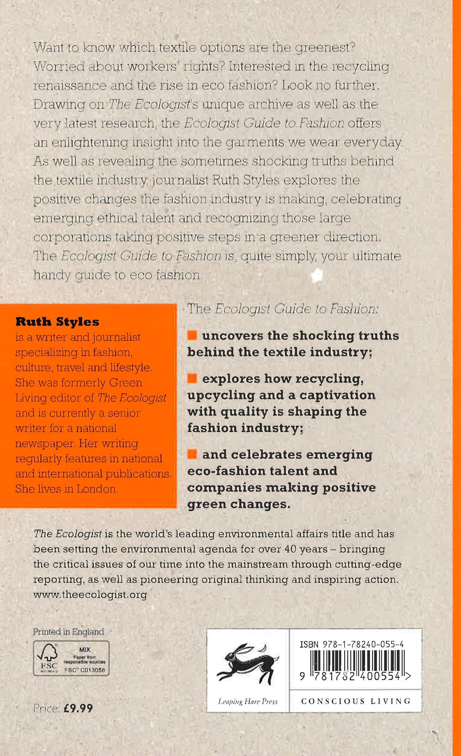 Green is the new black. Is eco fashion an endangered species? As eco fashion becomes increasingly stylish and mainstream fashion gets greener, could it be the end for green chic as we know it? The Ecologist Guide to Fashion investigates changing attitudes to eco fashion, and how the mainstream is embracing it; the good, the bad and the ugly of fashion; the big trends; and asks whether the future looks green for fashion? With eco fashion and the greening of mainstream fashion gaining momentum worldwide, and eco designers feted and recognised along with their non-eco counterparts, we say yes! More than ever before, the fashion industry is proving that it can be a force for good. Whether its local, fairtrade or organic, there's never been a better time to get into greener garments.