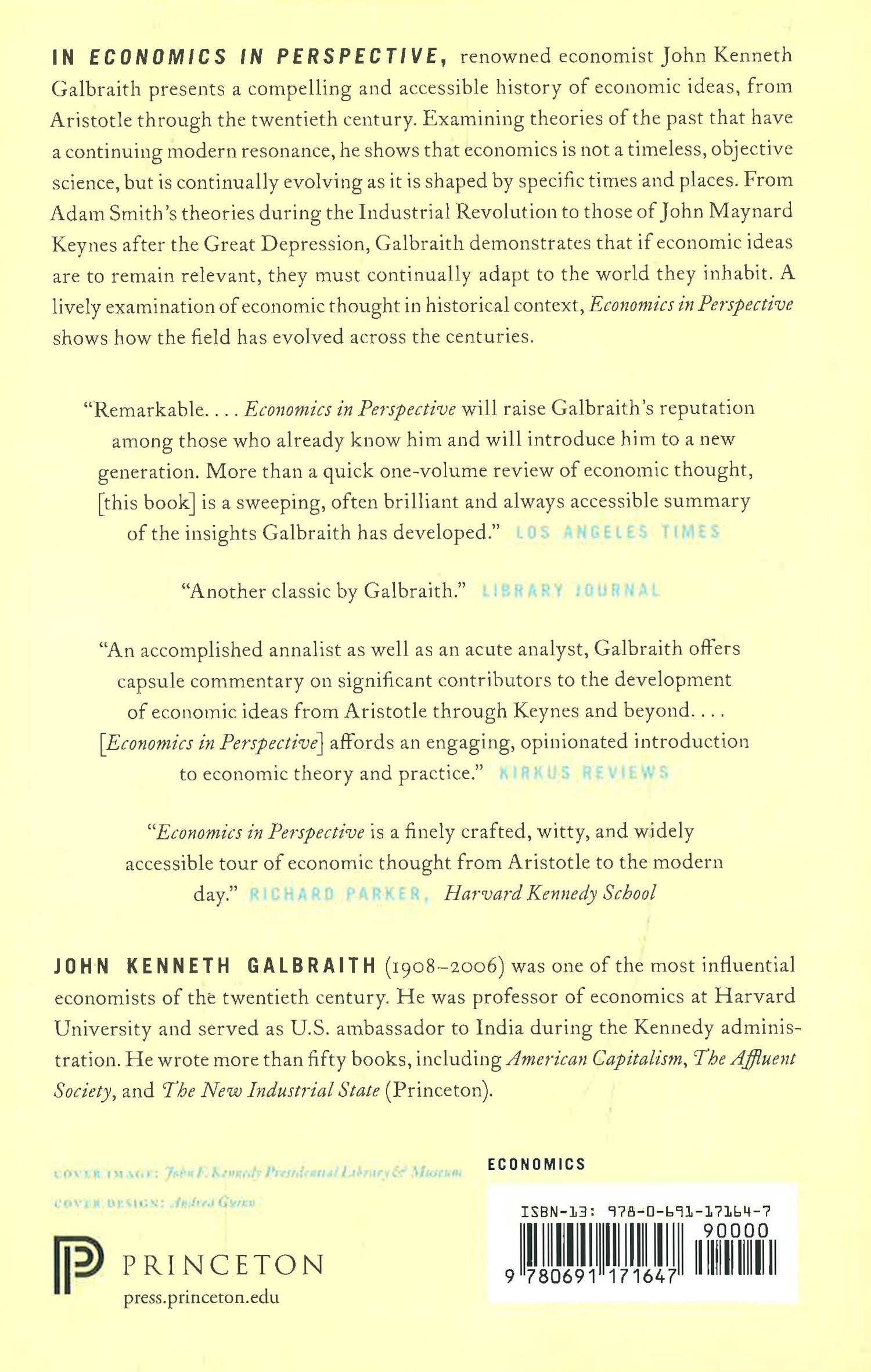 In Economics in Perspective, renowned economist John Kenneth Galbraith presents a compelling and accessible history of economic ideas, from Aristotle through the twentieth century. Examining theories of the past that have a continuing modern resonance, he shows that economics is not a timeless, objective science, but is continually evolving as it is shaped by specific times and places. From Adam Smith's theories during the Industrial Revolution to those of John Maynard Keynes after the Great Depression, Galbraith demonstrates that if economic ideas are to remain relevant, they must continually adapt to the world they inhabit. A lively examination of economic thought in historical context, Economics in Perspective shows how the field has evolved across the centuries.