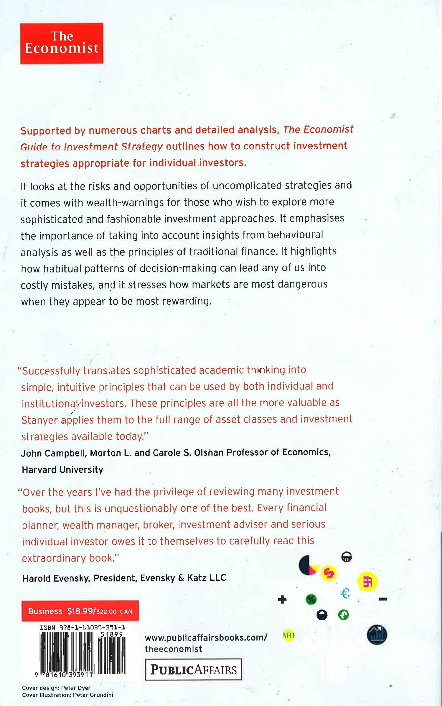 Supported by numerous charts and detailed analysis, The Economist Guide to Investment Strategy outlines how to construct investment strategies appropriate for individual investors. It looks at the risks and opportunities of uncomplicated strategies and it comes with wealth-warnings for those who wish to explore more sophisticated and fashionable investment approaches. It emphasizes the importance of taking into account insights from behavioral analysis as well as the principles of traditional finance. It highlights how habitual patterns of decision-making can lead any of us into costly mistakes, and it stresses how markets are most dangerous when they appear to be most rewarding.