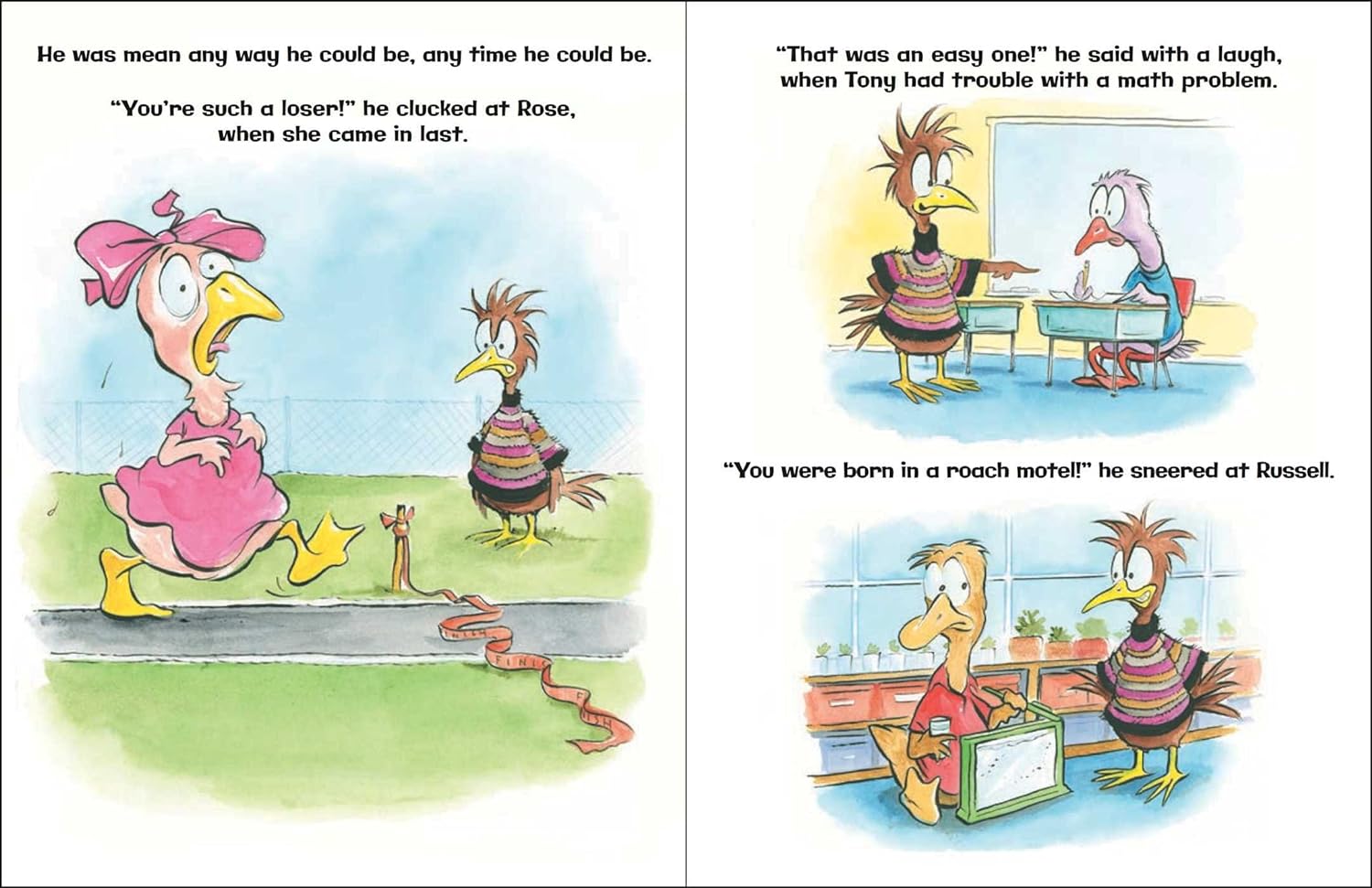 Eddie the chicken is the meanest kid in class. He may be the smallest, but he is the biggest bully. He calls people names, hides people’s homework, and trips people. No one is safe from his bullying! And when the teachers give him a time out, that just gives him time to think of more mean things to do!