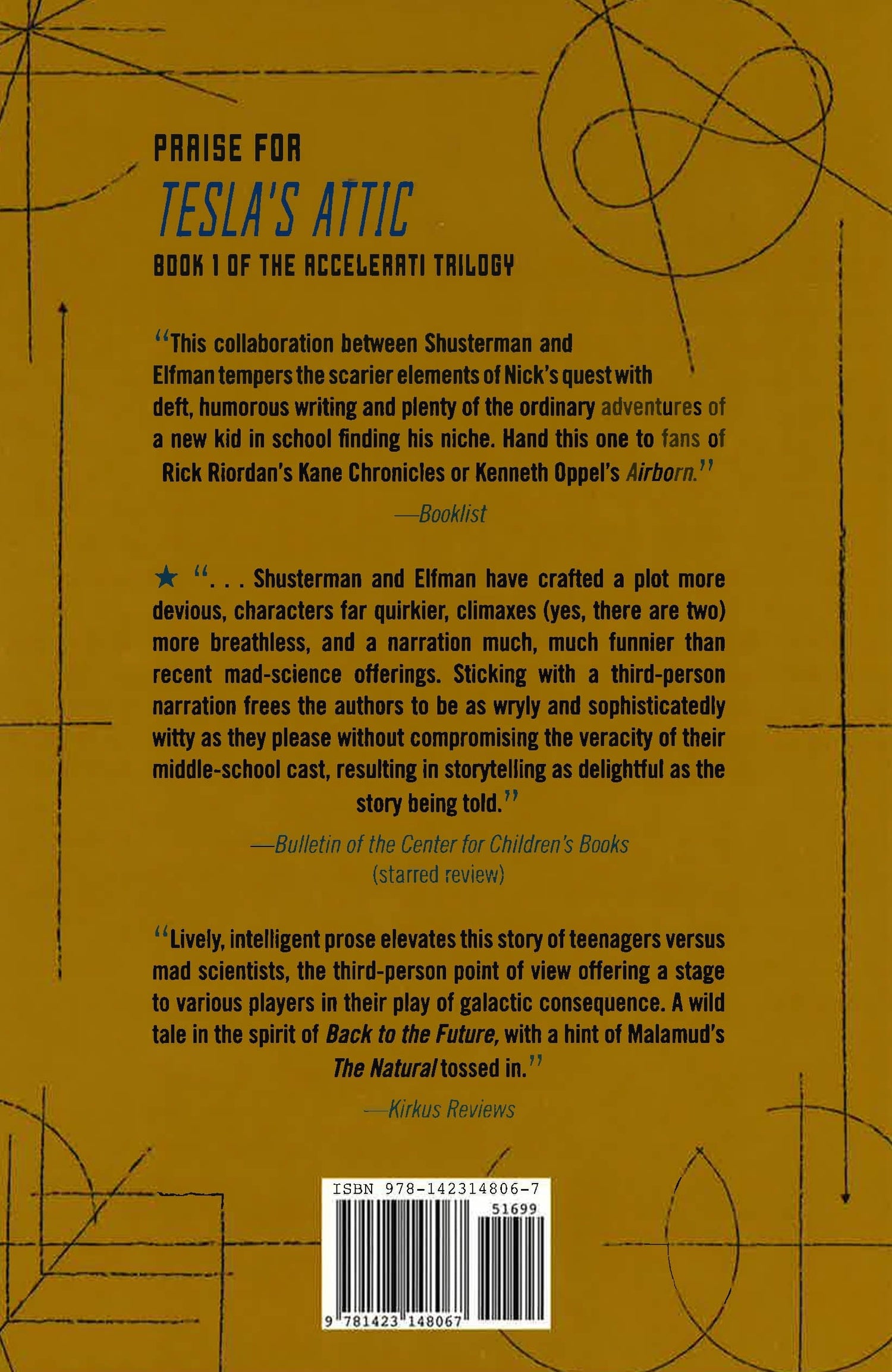"Lively, intelligent prose elevates this story of teenagers versus mad scientists, the third-person point of view offering a stage to various players in their play of galactic consequence. A wild tale in the spirit of Back to the Future, with a hint of Malamud's The Natural tossed in."--Kirkus Reviews "This collaboration between Shusterman and Elfman tempers the scarier elements of Nick's quest with deft, humorous writing and plenty of the ordinary adventures of a new kid in school finding his niche. Hand this one to fans of Rick Riordan's Kane Chronicles or Kenneth Oppel's Airborne."--Booklist * ..".Shusterman and Elfman have crafted a plot more devious, characters far quirkier, climaxes (yes, there are two) more breathless, and a narration much, much funnier than recent mad-science offerings. Sticking with a third-person narration frees the authors to be as wryly and sophisticatedly witty as they please without compromising the veracity of their middle-school cast, resulting in storytelling as delightful as the story being told."