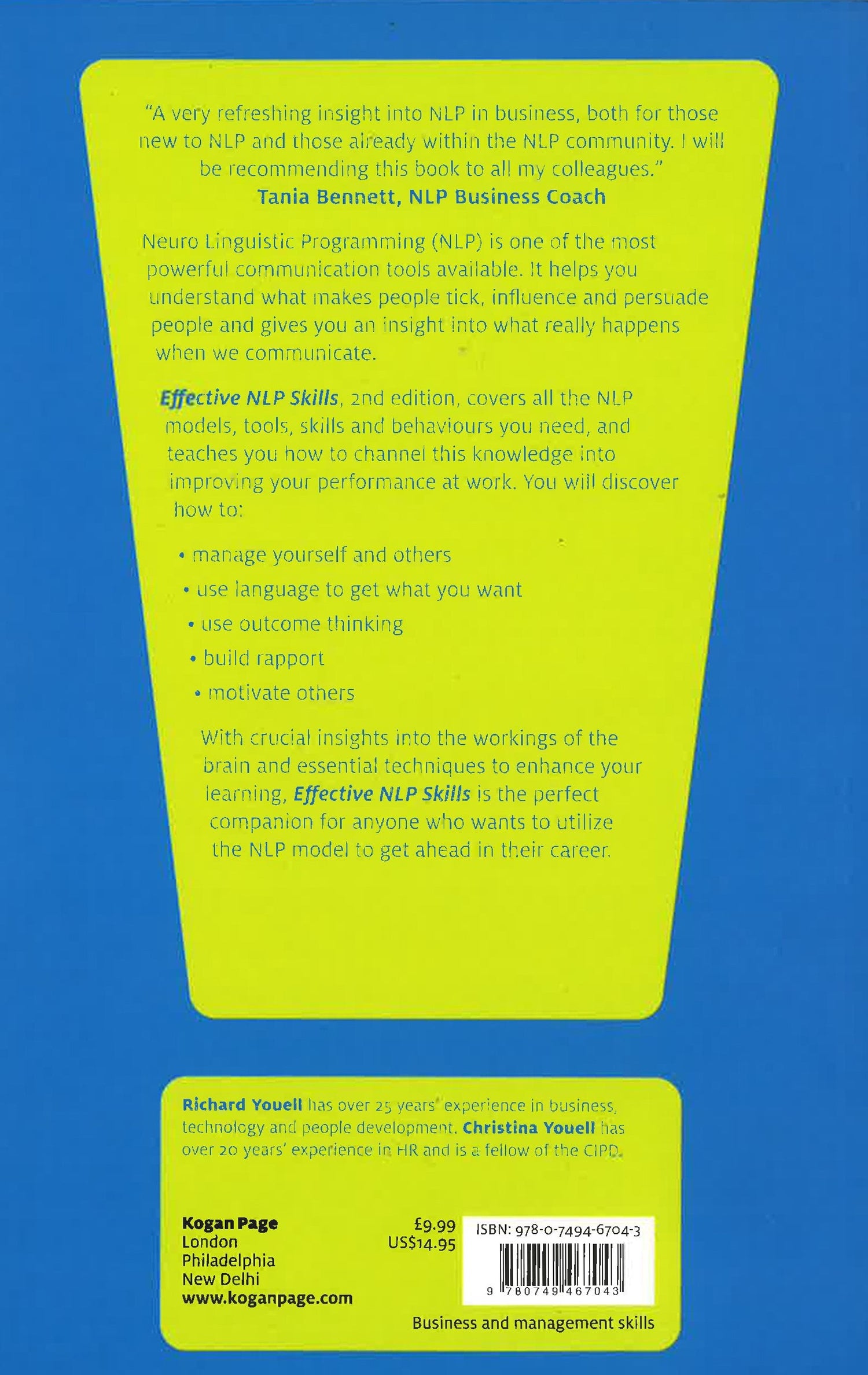Effective NLP Skills contains crucial insight into the workings of the brain and helps you communicate better with everyone from colleagues to clients - to get the results you want. Neuro Linguistic Programming (NLP) is one of the most powerful communication tools available. It helps you understand what makes people tick, helps you to influence and persuade people and gives you an insight into what really happens when we communicate. Effective NLP Skills, 2nd edition, covers all the NLP models, tools, skills and behaviours you need, and teaches you how to channel this knowledge into improving your performance at work. You will discover how to manage yourself and others, how to use language to get what you want, outcome thinking, how to build rapport and how to motivate others. With crucial insight into the workings of the brain and essential techniques to enhance your learning, Effective NLP Skills is for anyone who wants to utilise the NLP model to get ahead in their career.