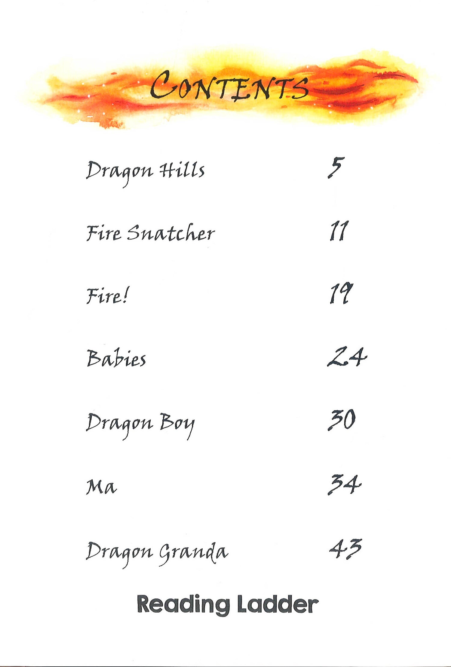The young lad lived happily with his family in the Dragon Hills. He looked like a dragon in his costume of leaves, and he learnt to sing dragon songs. But he couldn't make fire like his dragon friends and somehow, he still felt as if he was the odd one out.