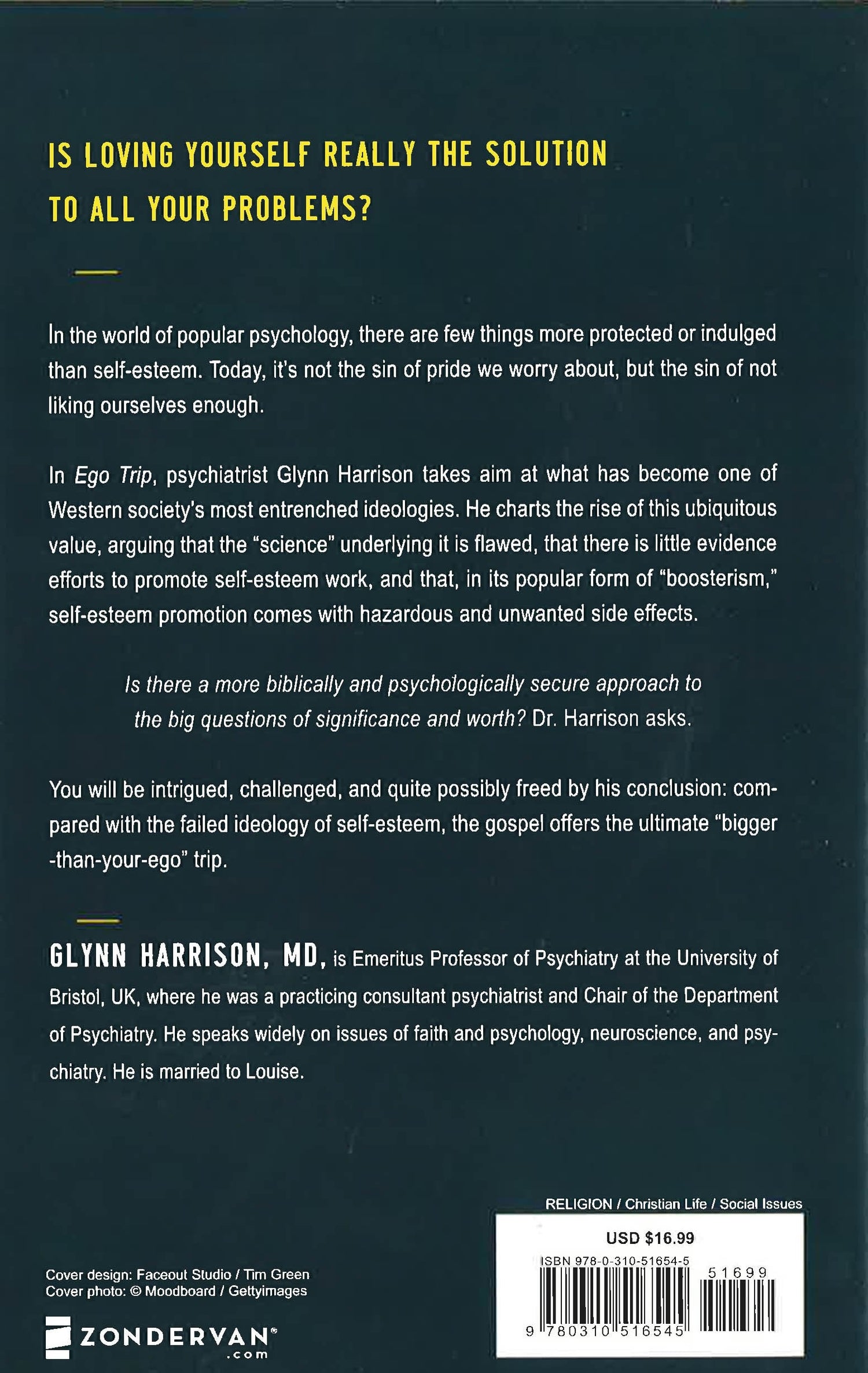 Is loving yourself really the solution to all your problems? In the world of popular psychology, there are few things more protected or indulged than that fragile little trait known as self-esteem. Today, it's not the sin of pride we worry about, but the sin of not liking ourselves enough. In Ego Trip, psychiatrist Glynn Harrison takes aim at what has become one of Western society's most entrenched ideologies. He charts the rise of this ubiquitous value, arguing that the "science" underlying it is flawed, that there is little evidence efforts to promote self-esteem work, and that, in its popular form of "boosterism," self-esteem promotion comes with hazardous and unwanted side effects. Is there a more biblically and psychologically secure approach to big questions of significance and worth? Dr. Harrison asks. You will be intrigued, challenged, and quite possibly freed by his conclusion: compared with the failed ideology of self-esteem, the gospel offers the foundation for personal significance and meaning.