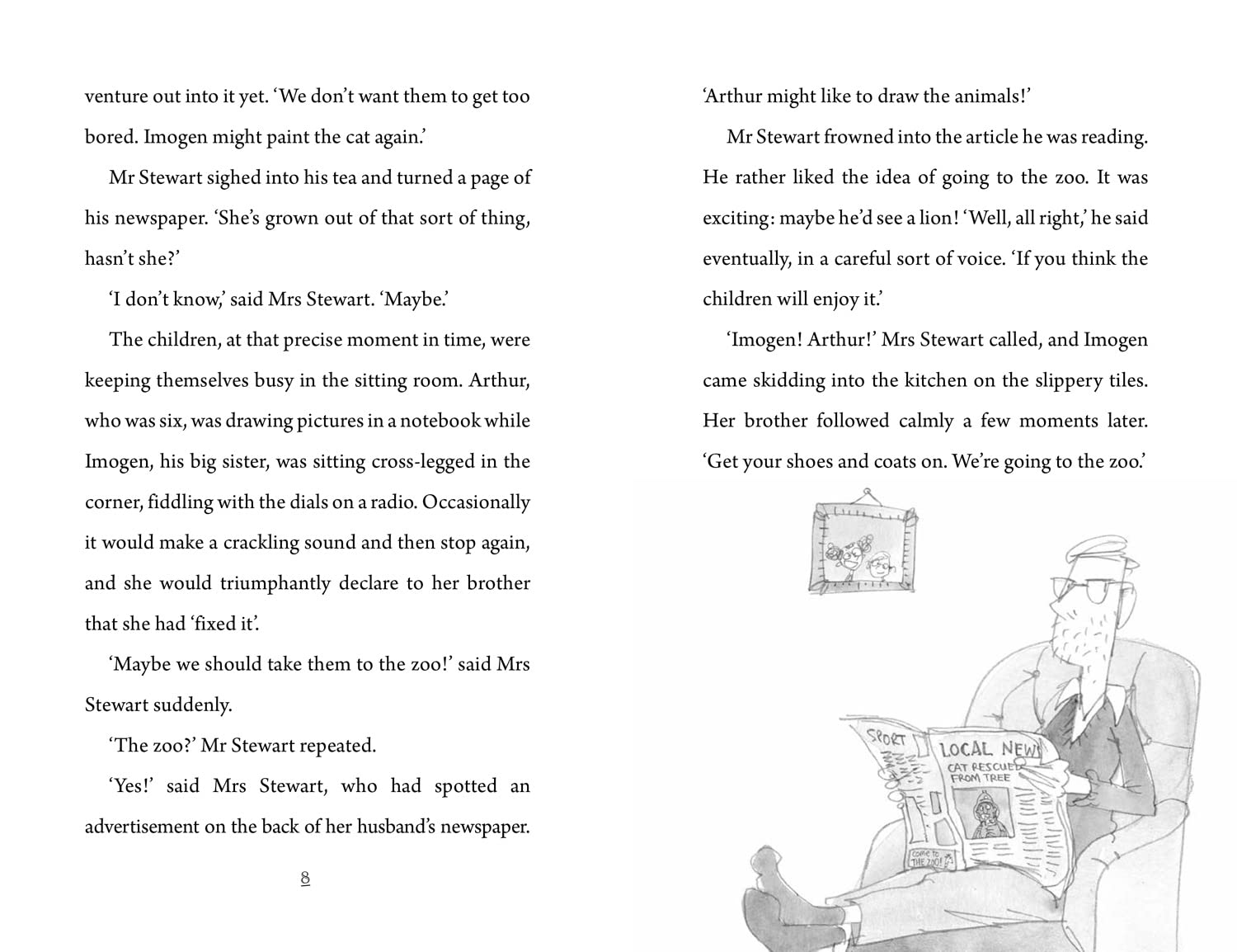 When the Stewarts spend a sunny, frosty December day at London Zoo, they’re enchanted by one small penguin. At the delight of young Imogen and Arthur, Mrs Stewart insists the penguin “must come and stay with them whenever he likes.”