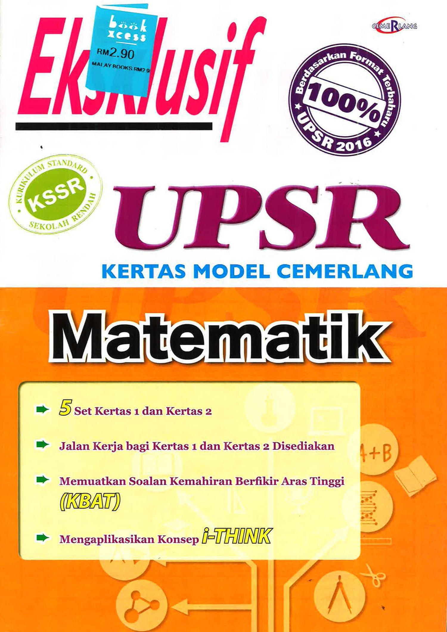 Buku latihan terdiri daripada 5 Set Kertas 1 dan Kertas 2 dan disediakan jalan kerja. Memuatkan soalan-soalan Kemahiran Berfikir Aras Tinggi (KBAT) dan juga mengaplikasikan konsep i-Think.