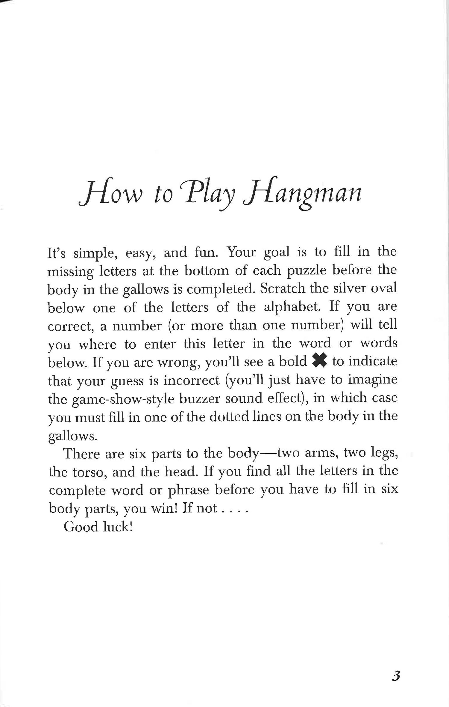 What's the twist to these unusual hangman puzzles? You can play them alone any time or place, whenever you want to satisfy an urge for great puzzles. In this jumbo book of 250 Scratch & Solve hangman puzzles, each game has numbers hidden under 26 scratch-off circles. Pick a letter, rub off the circle, and find out if the letter is in the puzzle and where!
