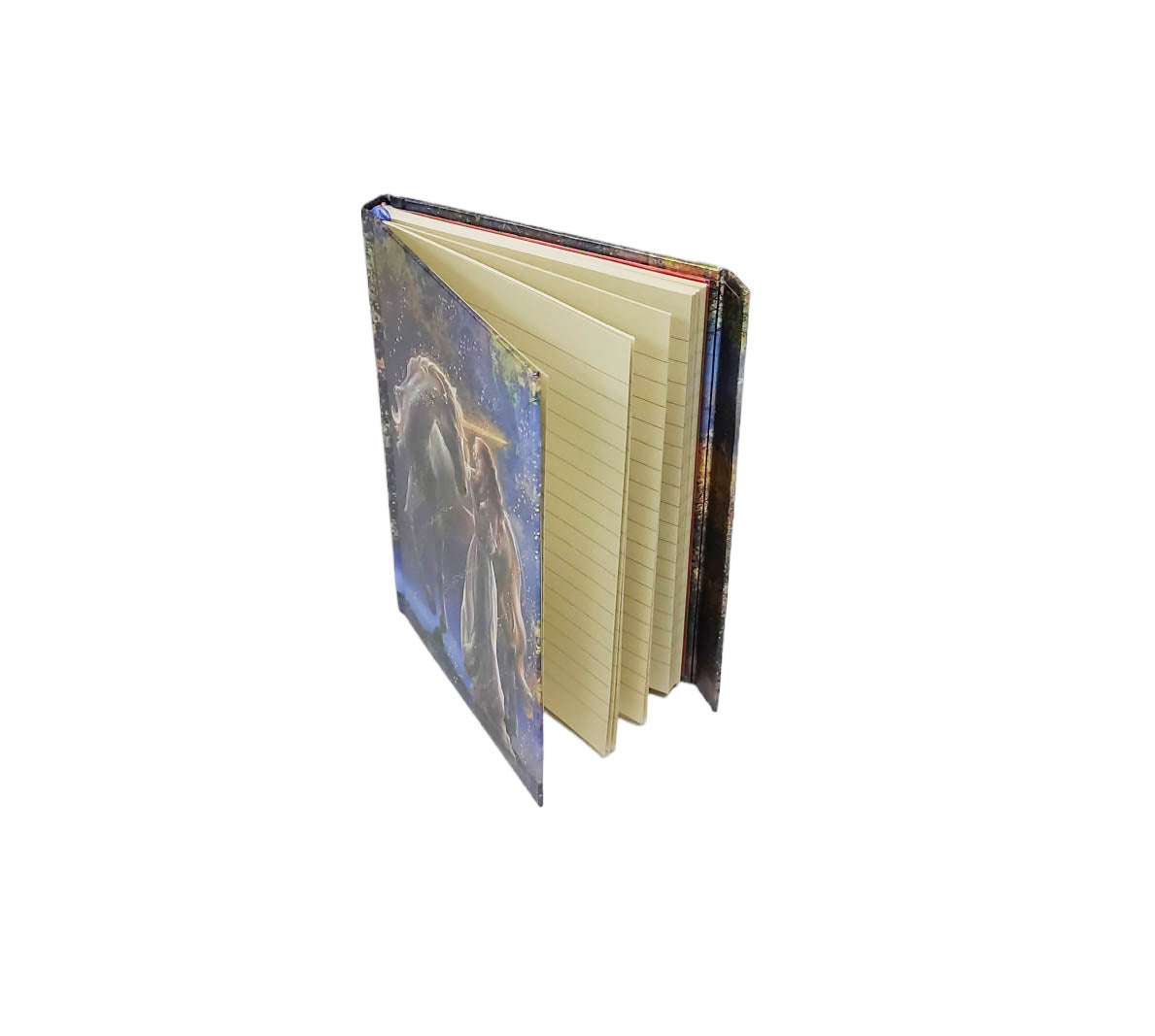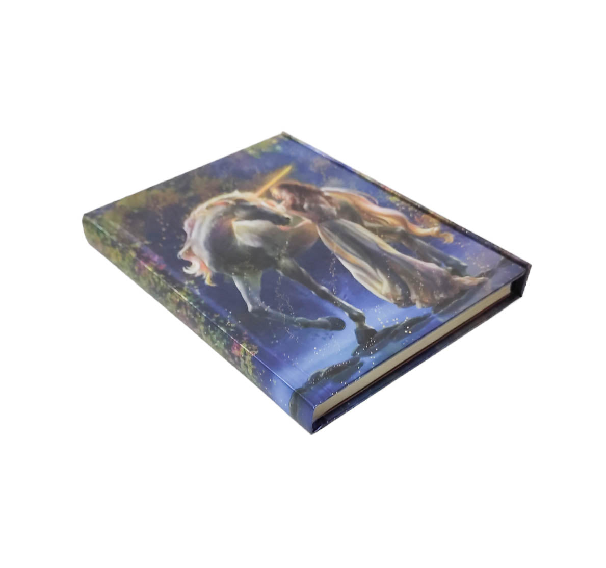 Part of a series of exciting and luxurious Flame Tree Notebooks. Combining high-quality production with magnificent fine art, the covers are printed on foil in five colours, embossed, then foil stamped. And they're powerfully practical: a pocket at the back for receipts and scraps, two bookmarks and a solid magnetic side flap. These are perfect for personal use and make a dazzling gift. This example features Elena Goryachkina: Sophia and the Unicorn.