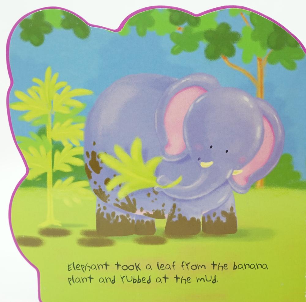 Feel Elephant's fuzzy ears and hear his great idea for getting clean after a muddy game.