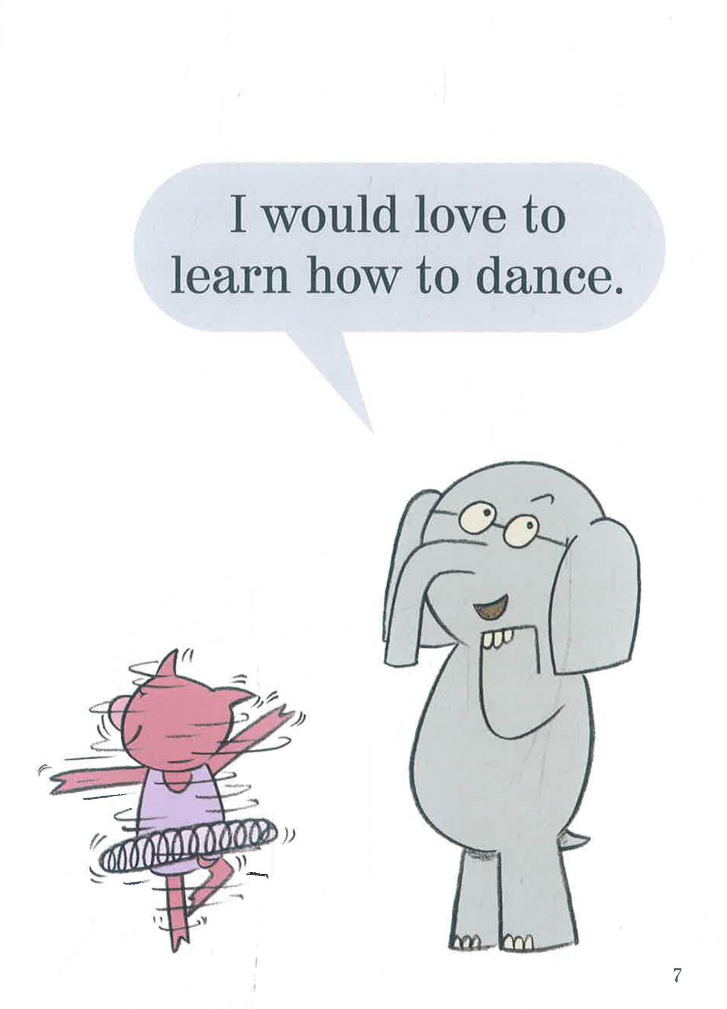 Piggie tries to teach Gerald some new dance moves, which doesn't go well. But perhaps Gerald can teach Piggie something even more important? Mo Willems creates another hilarious escapade starring the award-winning duo that will have early readers breaking into laughter from the first page.
