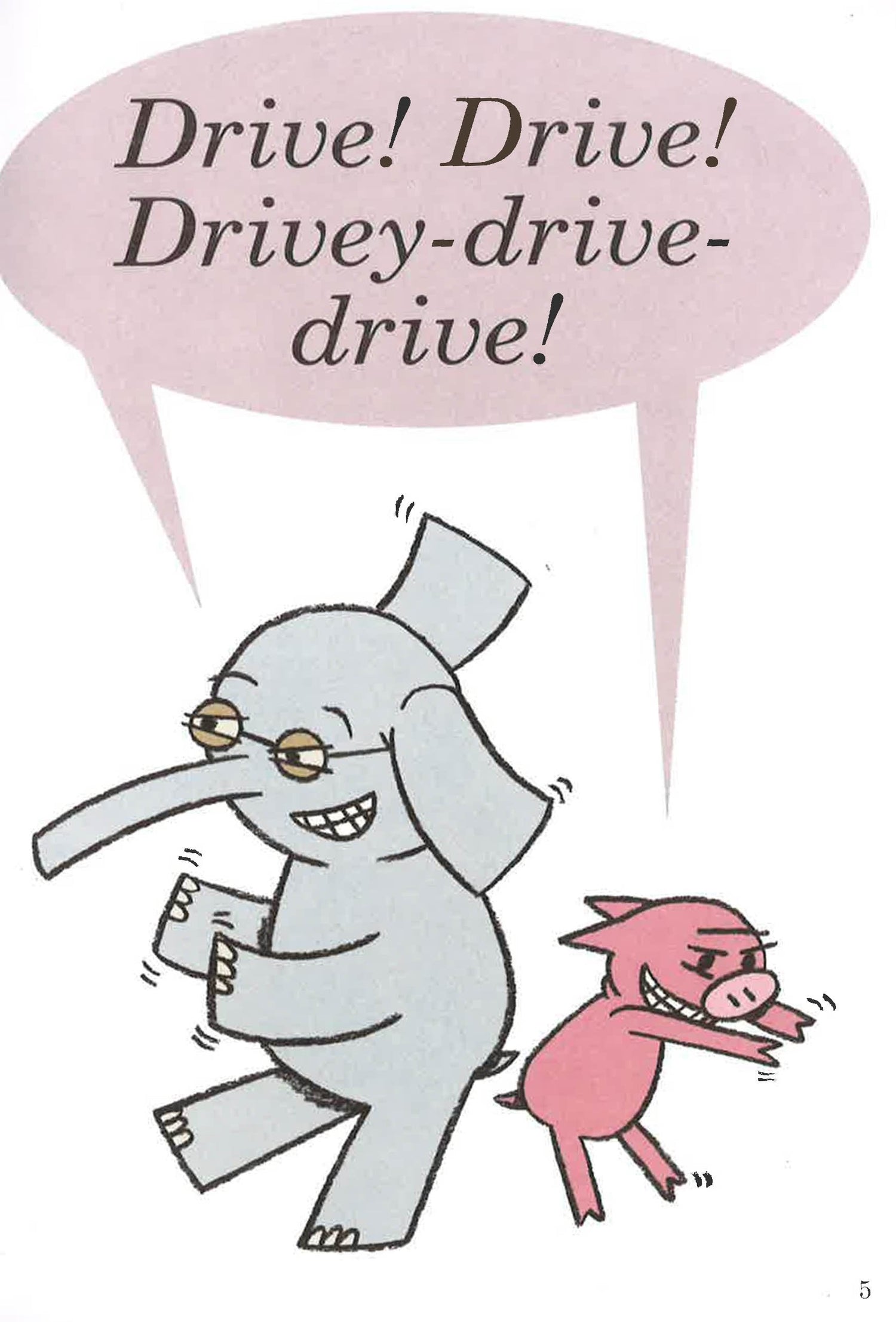 Told entirely in speech bubbles with a repetitive use of familiar phrases, this highly original book from the award-winning author of Don't Let the Pigeon Drive the Bus! is perfect for children just learning to read. Gerald is careful. Piggie is not. Piggie cannot help smiling. Gerald can. Gerald worries so that Piggie does not have to. Gerald and Piggie are best friends. Gerald and Piggie want to hit the road. But the best-laid plans of pigs and elephants often go awry.Once again, Mo Willems creates a hilarious escapade starring the Theodor Seuss Geisel Award-winning duo. Let's Go for a Drive! will have early readers breaking into laughter from the first page.