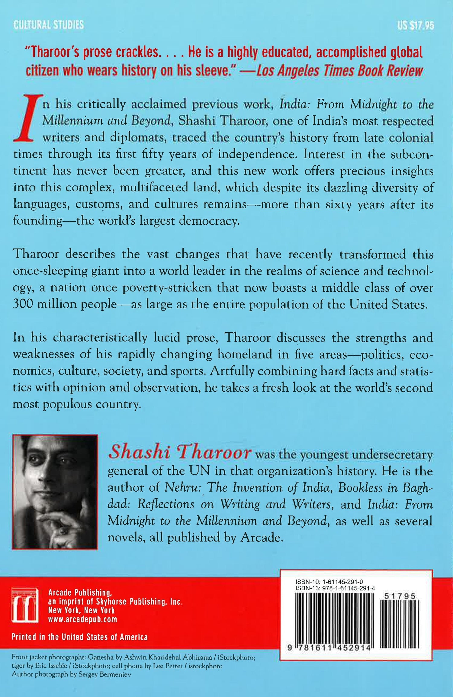 Interest in India has never been greater. Here Shashi Tharoor, one of the subcontinent's most respected writers and diplomats, offers precious insights into this complex, multifaceted land, which despite its dazzling diversity of languages, customs, and cultures remains more than sixty years after its founding the world's largest democracy. He describes the vast changes that have transformed this once sleeping giant into a world leader in science and technology, a nation once poverty-stricken that now boasts a middle class of over 300 million people as large as the entire population of the United States. Artfully combining hard facts and statistics with opinion and observation, Tharoor discusses the strengths and weaknesses of his rapidly evolving homeland in five areas politics, economics, culture, society, and sports and takes a fresh look at the world's oldest civilizations and most populous countries.
