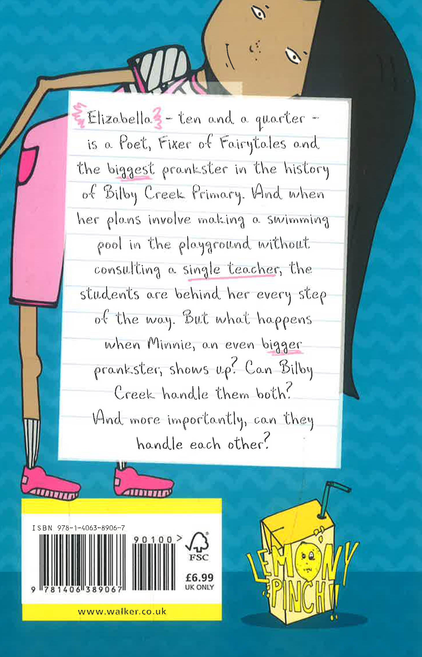 Elizabella – ten and a quarter – is a Poet, Fixer of Fairytales and the biggest prankster in the history of Bilby Creek Primary. And when her plans involve making a swimming pool in the playground without consulting a single teacher, the students are behind her every step of the way. But what happens when Minnie, an even bigger prankster, shows up? Can Bilby Creek handle them both? And more importantly, can they handle each other?
