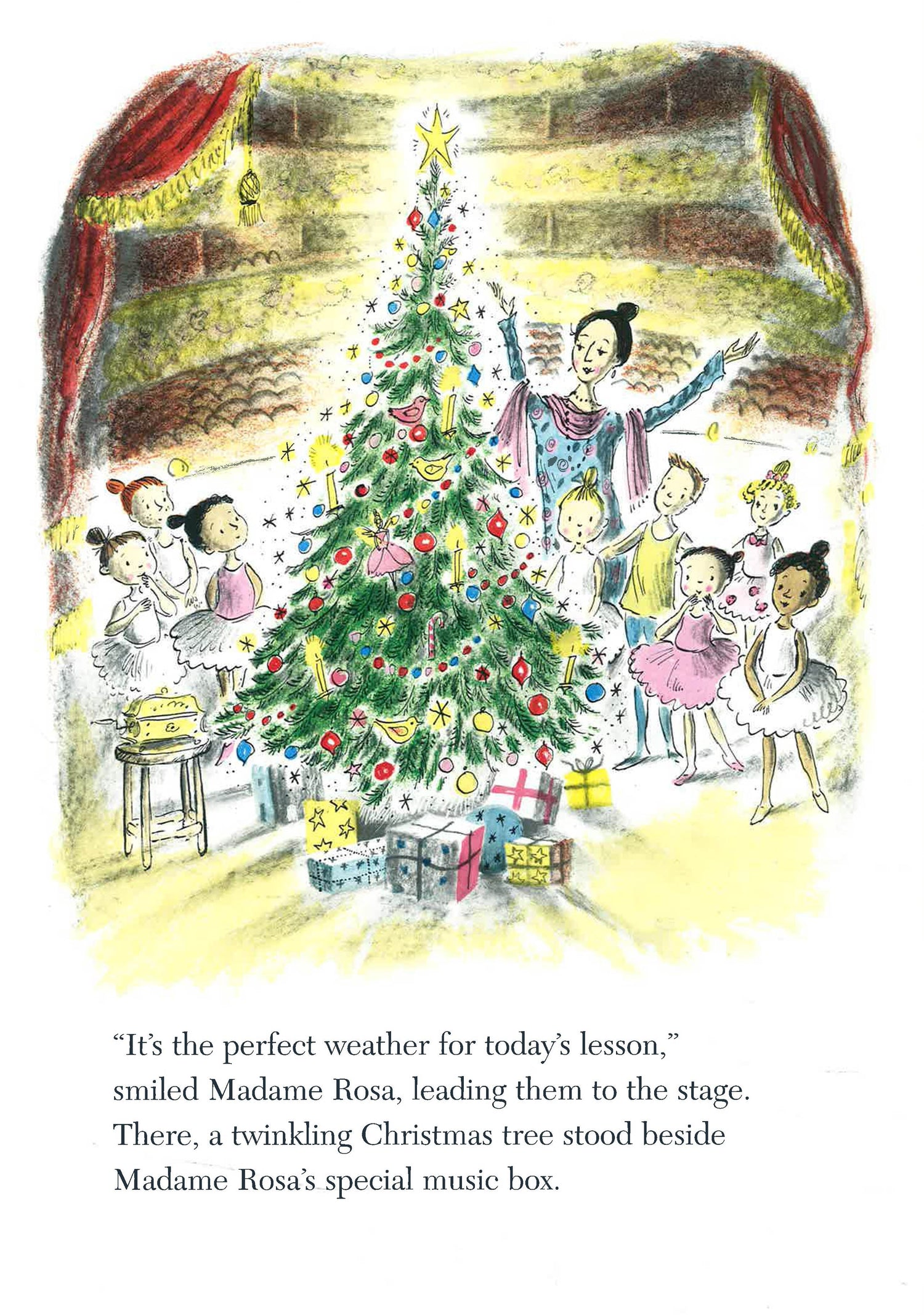 Christmas is coming, and Madame Rosa has prepared a surprise party for her ballet class. "Ella Bella, would you fetch the music box?" asks Madame Rosa. "Then we can have some dancing at our party." As the music begins playing, little Ella Bella is magically transported into the enchanting, festive world of The Nutcracker ballet. There, she meets the beautiful Clara and her wooden Nutcracker doll. Together, Ella and Clara must fight off the evil Mouse King so they can break the evil spell that has transformed a handsome prince into the Nutcracker doll. When the spell is broken and the prince comes to life, he leads Clara and Ella to a magic forest where they dance to the music of the famous Nutcracker ballet. On the last page of this beautifully illustrated story, young readers learn about the origins of The Nutcracker ballet, its music written in 1892 by the composer Piotr Tchaikovsky for Russia's famous Imperial Ballet.