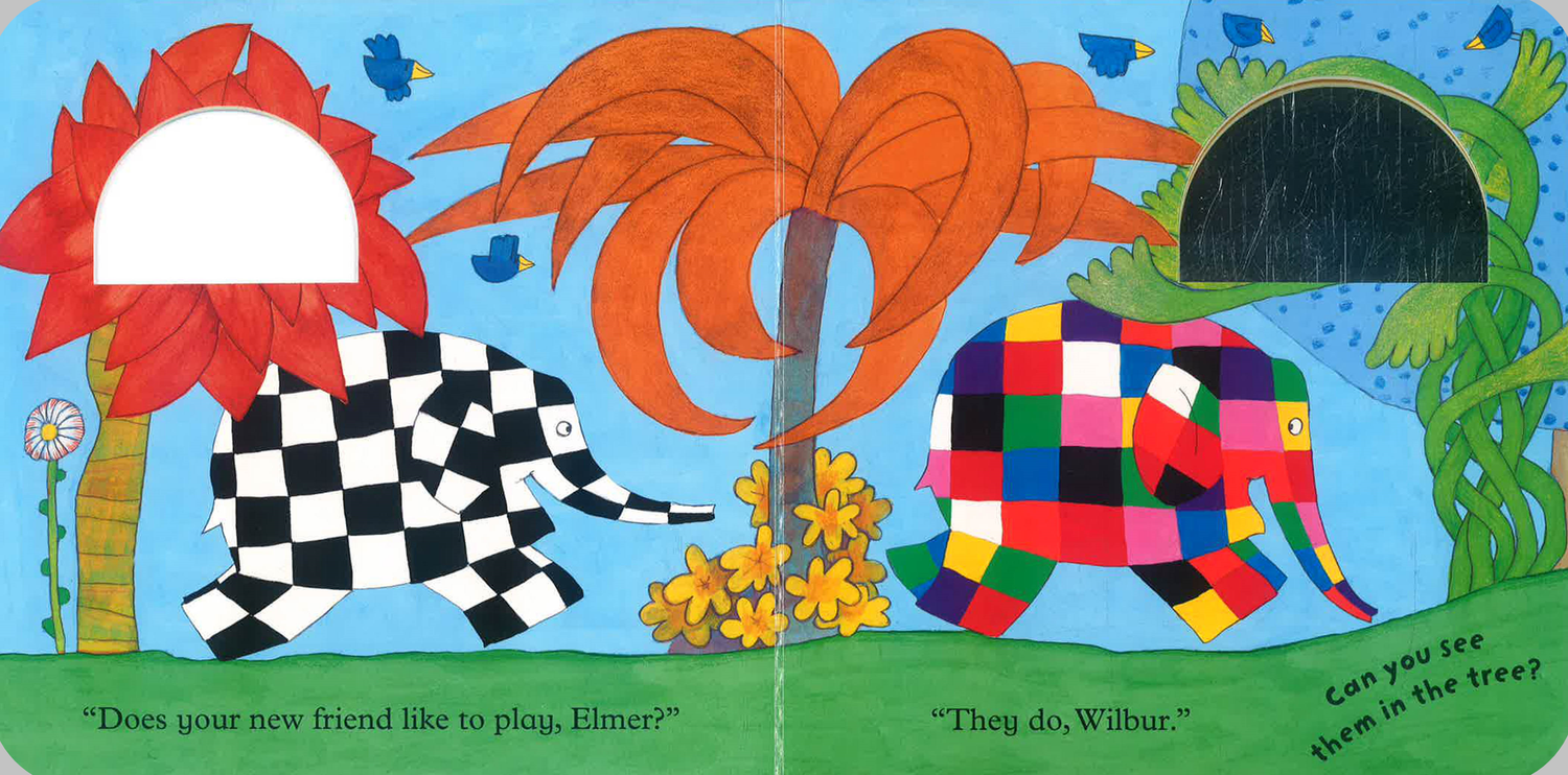 Help the animals guess who Elmer's new friend is in this sturdy board book with a mirror surprise at the end. Peek through cut outs on each page to catch a glimpse of Elmer's new friend - it's you! Babies and toddlers will love this bright and interactive introduction to the bright world of Elmer and his animal friends.