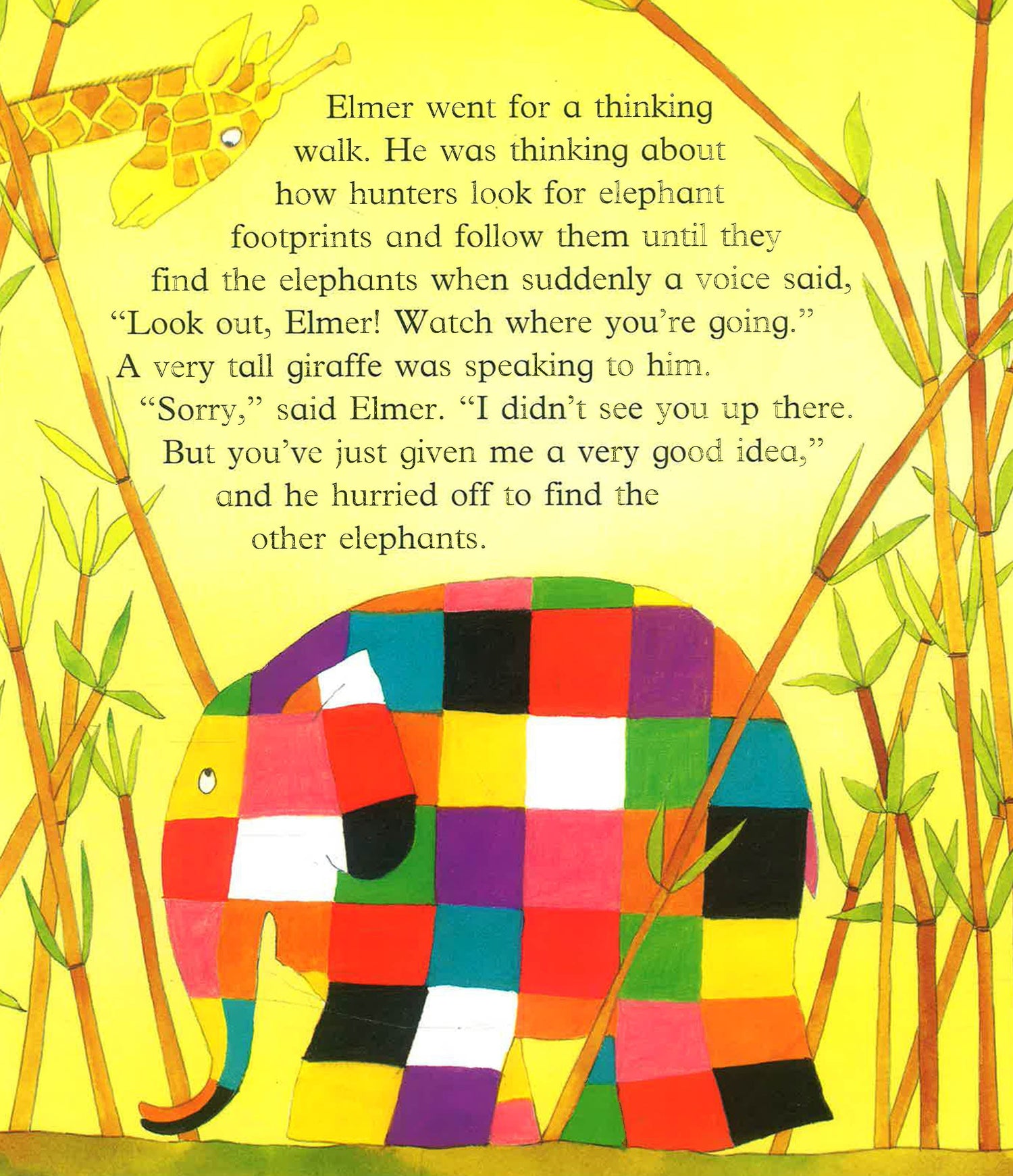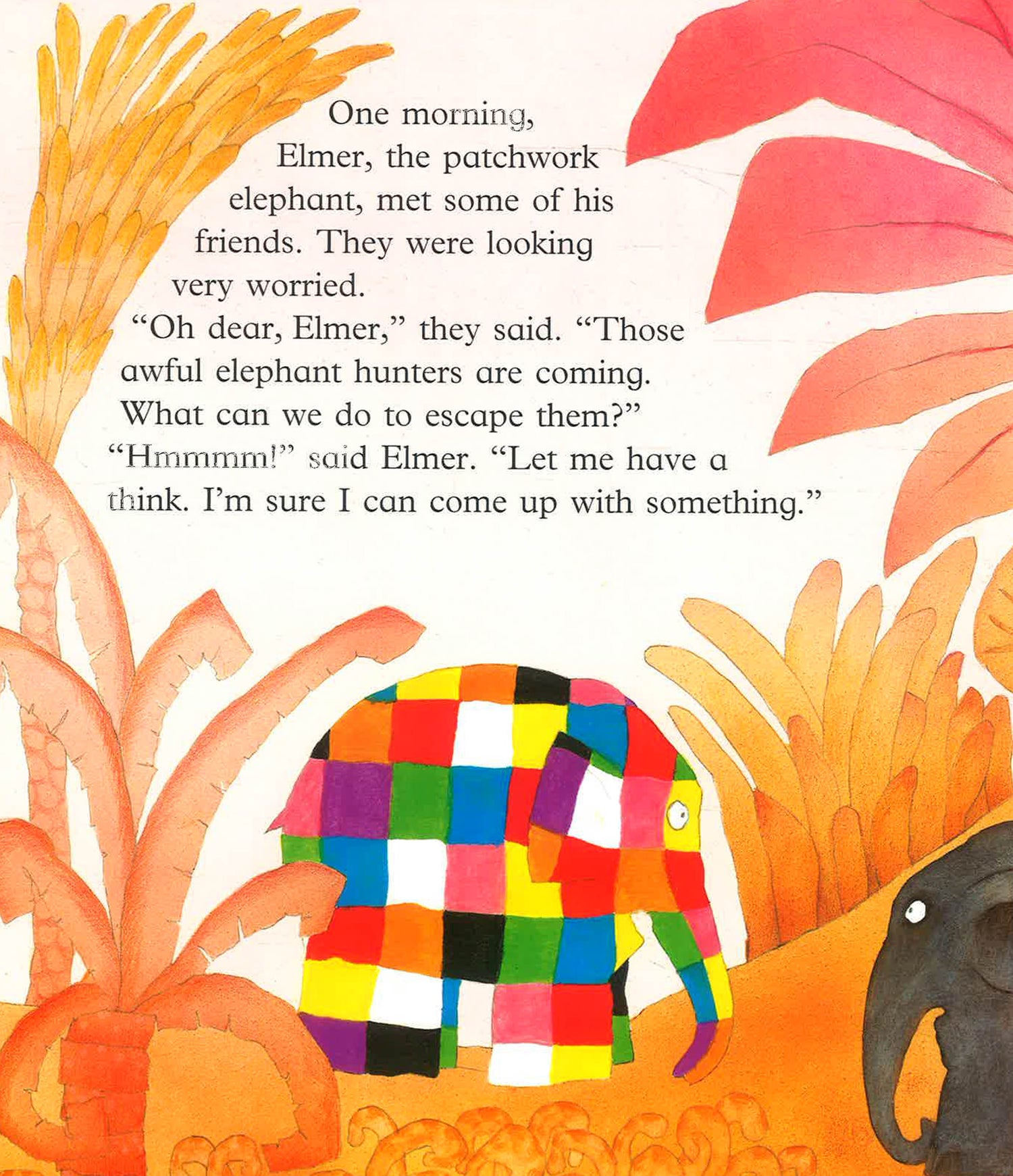 The hunters are coming and all the elephants are worried. Elmer, the patchwork elephant, comes up with a plan to outwit the hunters but things don't turn out quite as planned…