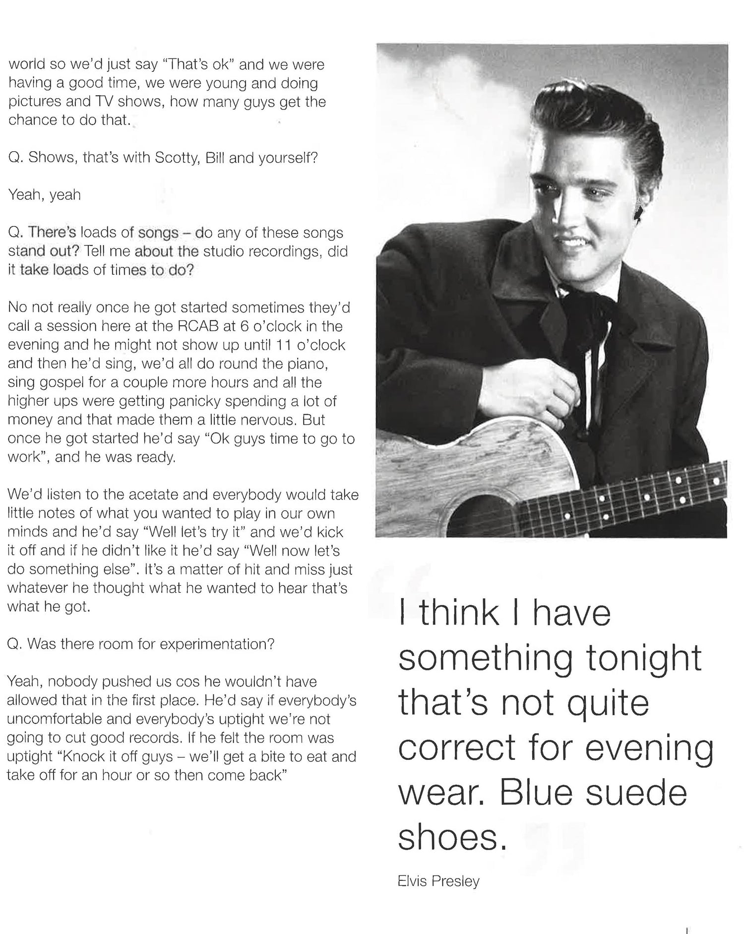 This Illustrated Limited Edition hardback book provides an insight into the unique journey of one of the most significant cultural icons of the 20th century Elvis Presley Follow the authoritative text charting the career of the man they call the King of Rock and Roll . We follow Presley from his carefree beginnings at Sun records to global superstardom. In addition the book features rare interviews with the legendry Elvis guitarist Scotty Moore, Drummer DJ Fontana and Elvis loyal backing singers the Jordanaires.
