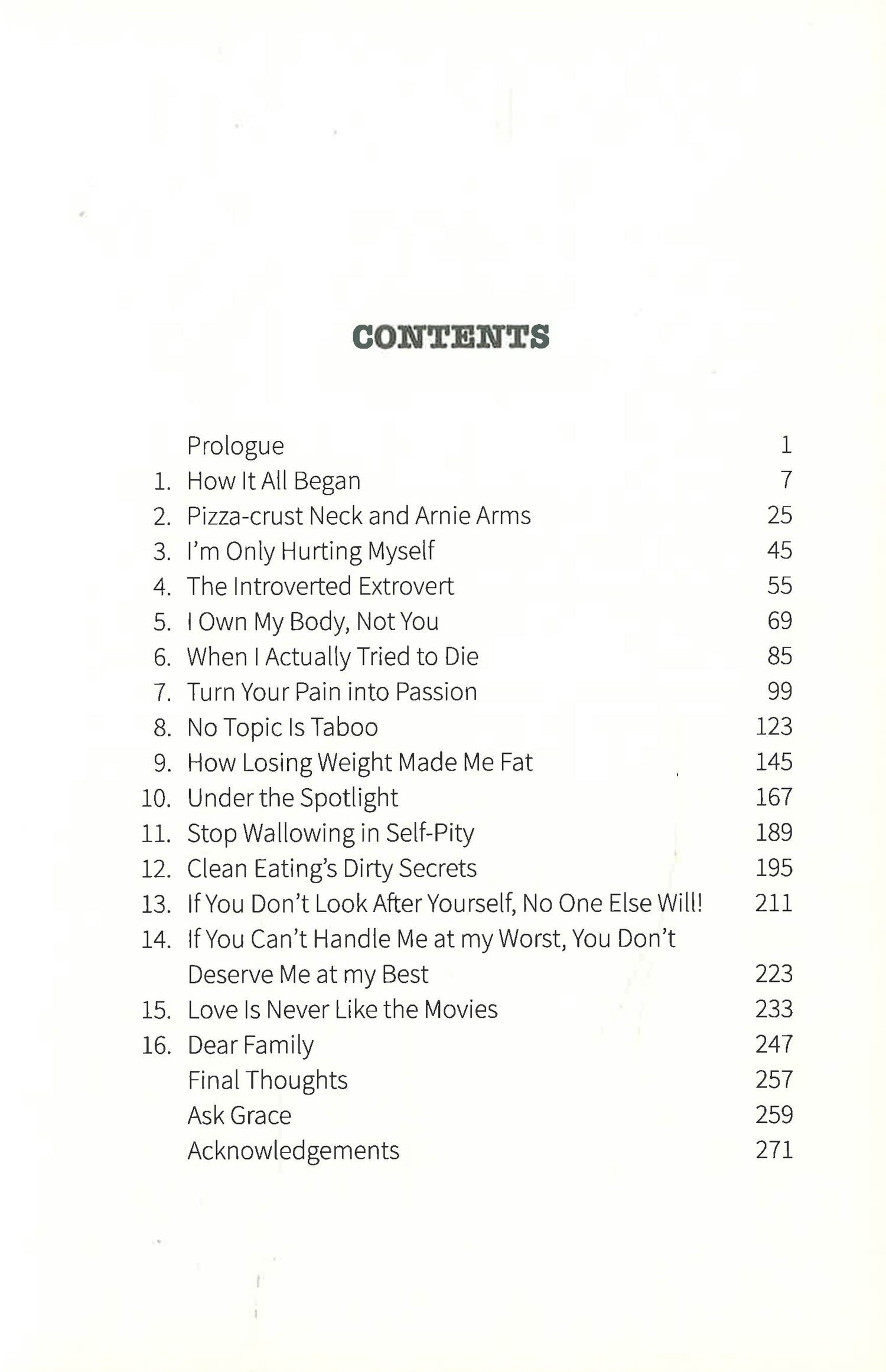 An honest and fun insight into tackling the problems that all young people face growing up.For fans of BBC Three's Clean Eating's Dirty Secrets and The Cost of Cute, an honest and fun insight into tackling the problems that all young people face.From struggling with an eating disorder and body image issues to flashing Harry Potter (yes, that really did happen), Grace Victory has experienced it all.Here, in No Filter, Grace shares her inspirational story of growing up in a troubled household, battling with depression and finally overcoming it all by learning to love herself just as she is. After years of self-loathing and self-destructive behaviour, she hit an all-time low but thanks to therapy, good friends and an award-winning blog, she has rebuilt herself to become a TV presenter and an inspirational role model for young people. Thanks to her bravery, instinctive honesty and ability to break down taboos, Grace is now able to speak openly about her personal battles and she regularly offers guidance to her legion of fans.Brimming with hilarious anecdotes and no-nonsense advice, the Internet's Big Sister tells you everything you need to know about accepting yourself and fighting back, in style.