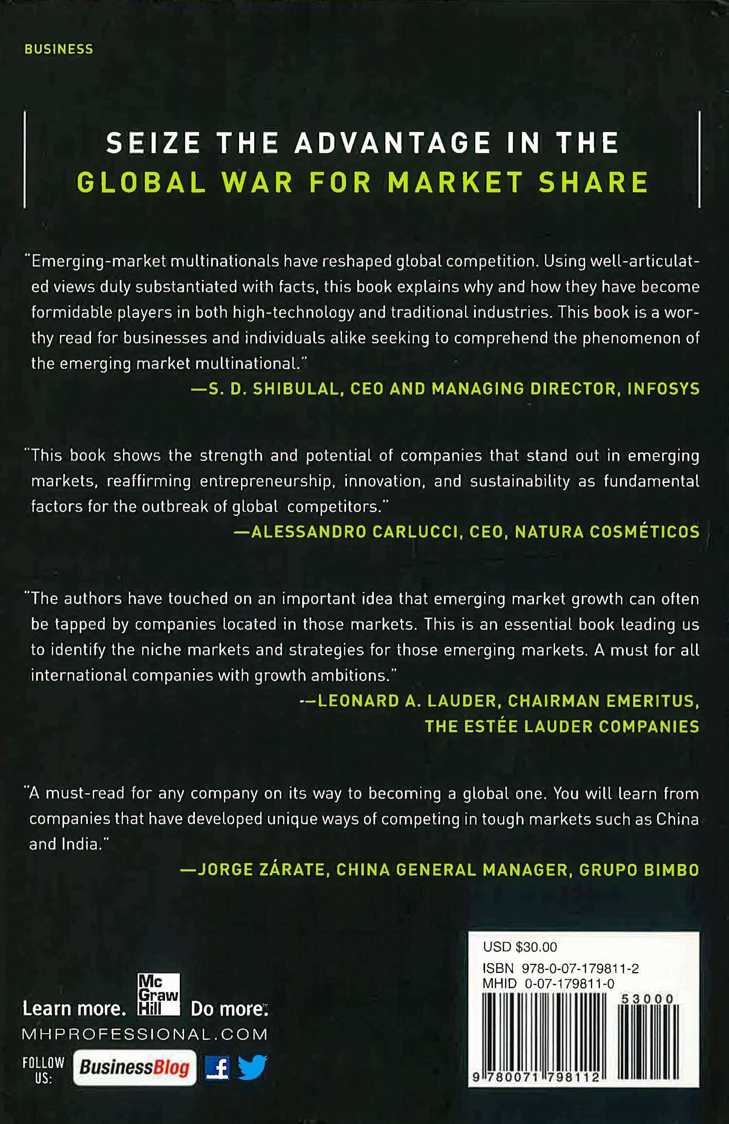 SEIZE THE ADVANTAGE IN THE GLOBAL WAR FOR MARKET SHAREWinner of the 2013 Small Business Book Award - Top 10 Overall The newest economic behemoth, China, is snatching market share from the U.S., Japan, and Europe at an alarming rate. But China isn't alone. The world'slargest producers of biofuel, meat, consumer electronics, regional jets, baked goods, candy, and many other products are all emerging market multinationals (EMMs). And industries poised to be taken over by EMMs include personal computers, IT services, mining, wind turbines, and cement.The balance of power in the global economy is shifting.Are you in a position to compete with the most energetic, imaginative companies on the planet?In Emerging Markets Rule, two experts on the global shift in economic hegemony explain what is happening, why it is happening--and how you can prevent it from happening to you. The authors provide an actionplan based on leaner, more operationally proficient ways for maintaining the competitive advantage based on seven new axioms of global competitiveness:Execute, strategize, and execute againCater to the nichesScale to winEmbrace chaosAcquire smartExpand with abandonNo sacred cows!Emerging market multinationals are here to stay; they're not going to go away, even when the global economy rights itself. "What began as a necessity--a kind of guerilla-business warfare against the corporate superpowers--has now evolved into best practices and is on its way to becoming what everyone needs to know," the authors write. "Simply put, down is up. The weak have become strong."You need to learn these new "best practices" now because tomorrow will be too late. Emerging Markets Rule is your road map for business success in the increasingly competitive, chaotic global markets."Emerging-market multinationals have reshaped global competition. Using well-articulated views duly substantiated with facts, this book explains why and how they have become formidable players in both high-technology and traditional industries. This book is a worthy read for businesses and individuals alike seeking to comprehend the phenomenon of the emerging market multinational." -- S. D. Shibulal, CEO and Managing Director , Infosys"This book shows the strength and potential of companies that stand out in emerging markets, reaffirming entrepreneurship, innovation, and sustainability as fundamental factors for the outbreak of global competitors." -- Alessandro Carlucci , CEO, Natura Cosmeticos"The authors have touched on an important idea that emerging market growth can often be tapped by companies located in those markets. This is an essential book leading us to identify the niche markets and strategies for those emerging markets. A must for allinternational companies with growth ambitions." -- Leonard A. Lauder, Chairman Emeritus, The Estee Lauder Companies"A must-read for any company on its way to becoming a global one. You will learn from companies that have developed unique ways of competing in tough markets such as China and India." -- Jorge Zarate , China General Manager, Grupo Bimbo