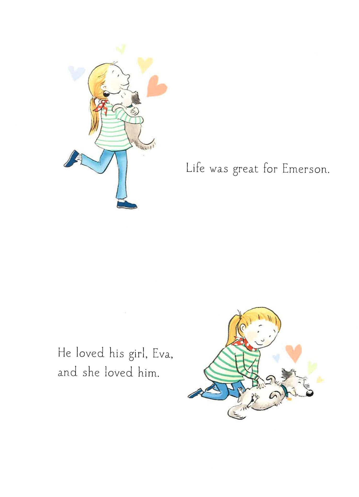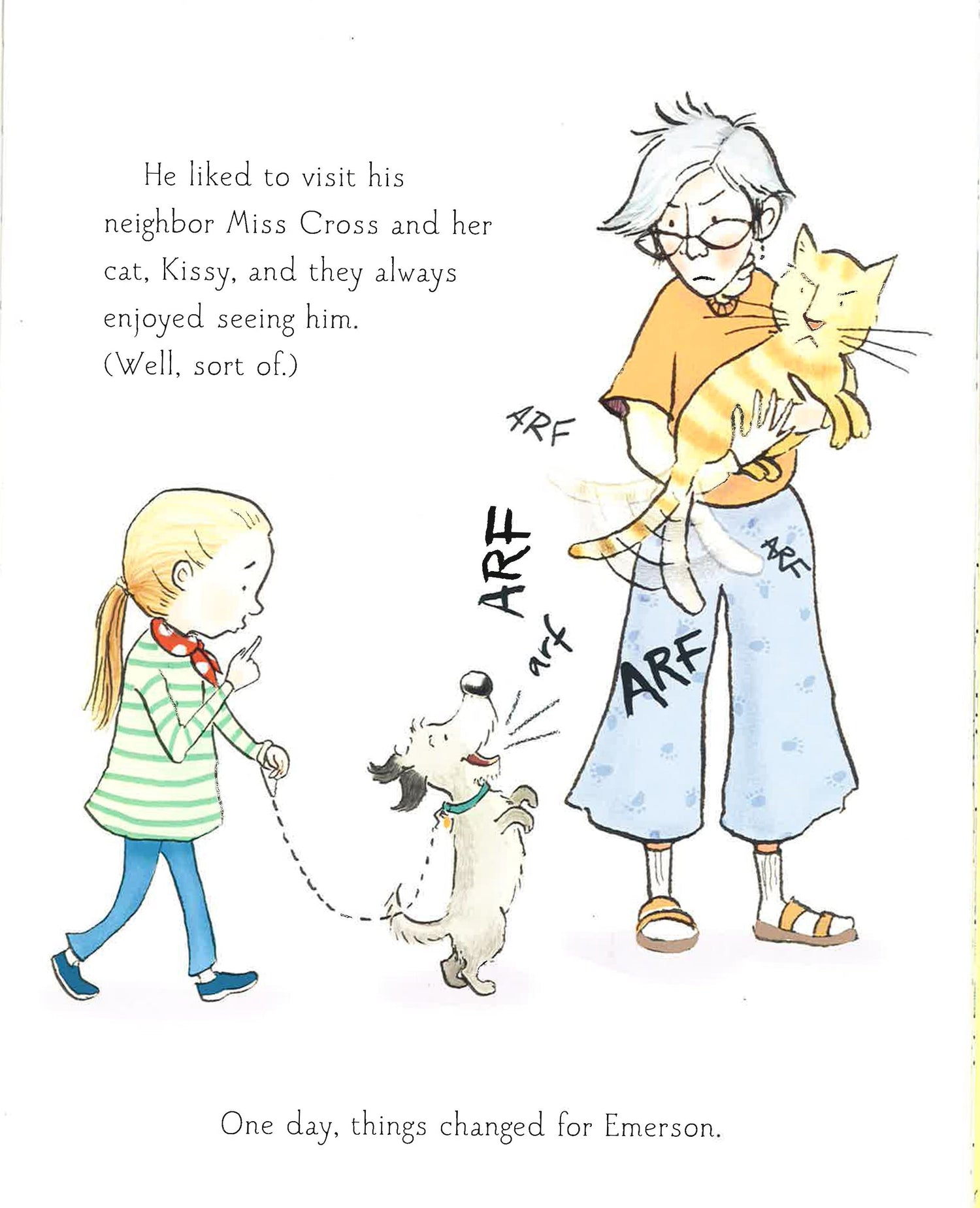 Arf! Arf! Arf! Bird, squirrels, the mailman--Emerson can't help but bark his loudest when he gets excited. But when his bark scares one of his neighborhood friends into hiding, Emerson's girl Eva must forbid him from barking altogether. Can Emerson adjust to a life in silence? Or will he find a way to put his powerful bark to good use? Liza Woodruff's Emerson Barks is a charming dog story that shows how good intentions can triumph over mistakes.