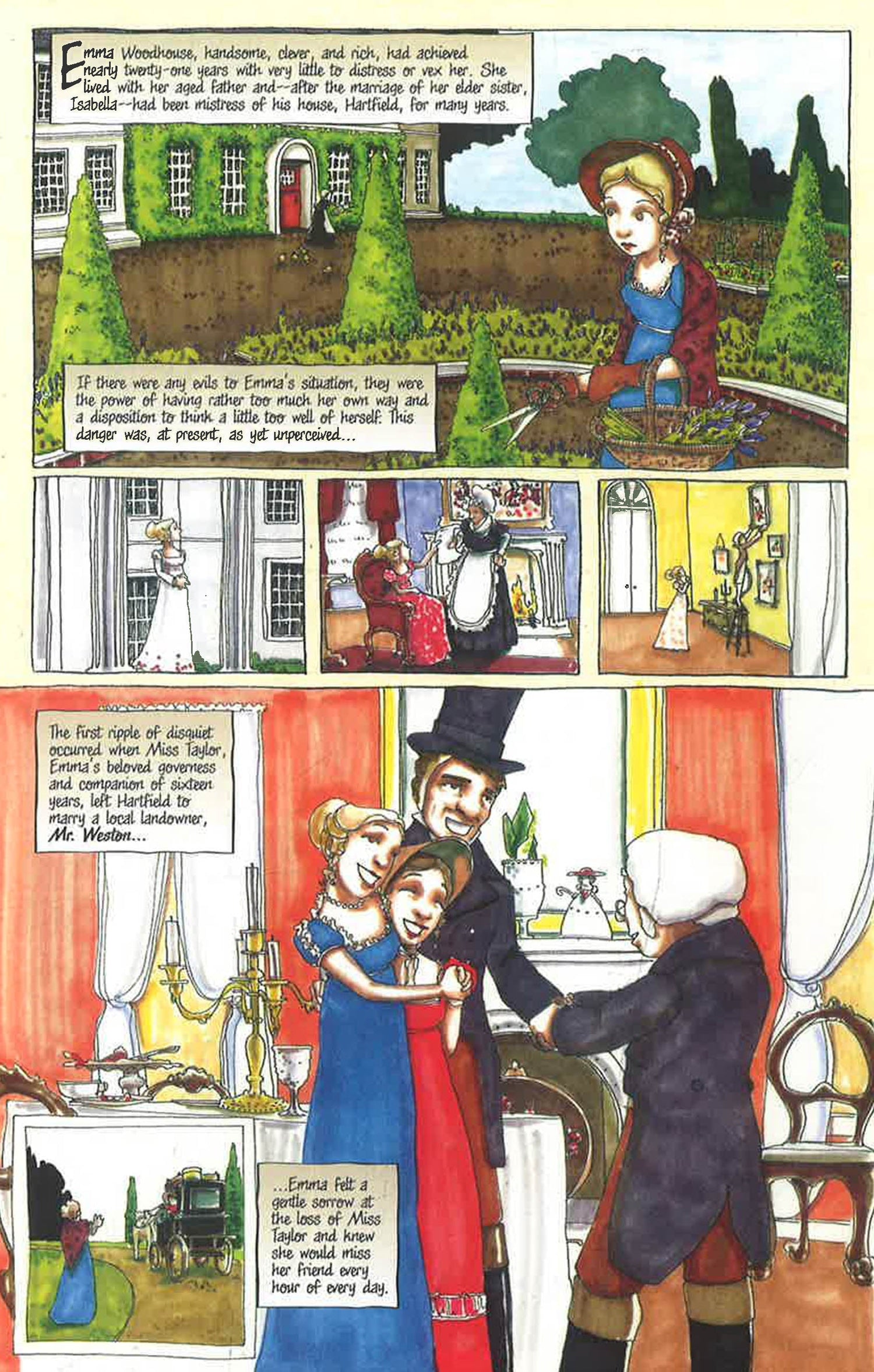 Jane Austen's classic tale of mischief and budding romance comes to life! In the village of Highbury, young Emma Woodhouse is an expert in romance. believing herself a matchmaker, she employs her knack for pairing people atevery opportunity. according to her, she hasn't been wrong yet, and the mere thought she could be is quite preposterous. When a single young lady - Harriet Smith - arrives in Highbury, Emma is determined to find her a suitable gentleman caller. between card parties, suppers and carriage drives, everything seems to be going according to plan. however, love has other intentions! With her schemes backfiring in ways she could not anticipate, Emma finds her meddling is leading to heartbreak - her own! Can she set aside her agenda before true love goes asunder? Award-winning writer nancy butler - adapter of Marvel's best-selling Pride and Prejudice and Sense and Sensibility - brings you another Jane Austen classic, breathing life into the author's most precocious heroine. *This book may have a remainder mark*