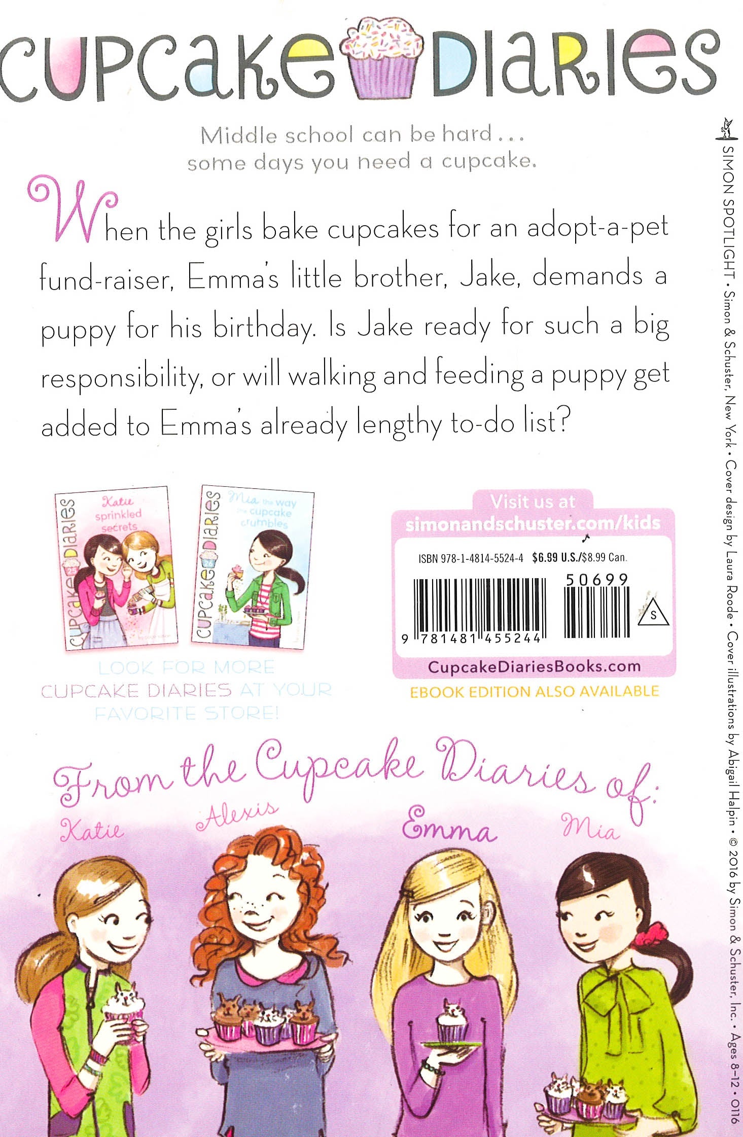 When Emma's little brother loses the neighbor's dog, the girls must work together to track her down in the latest addition to the Cupcake Diaries series. When the girls bake cupcakes for a big "Adopt a Pet" fundraiser, Emma's little brother Jake decides he wants to get a puppy! At first it seems like a really sweet idea, especially when Mia says Jake can walk and groom her two dogs to get used to what needs to be done. But when a neighbor goes on vacation and leaves Jake in charge of his four-legged friend and the dog goes missing, the girls realize perhaps Jake is still too young for a pet. Will the girls find the missing pup before her owner returns?