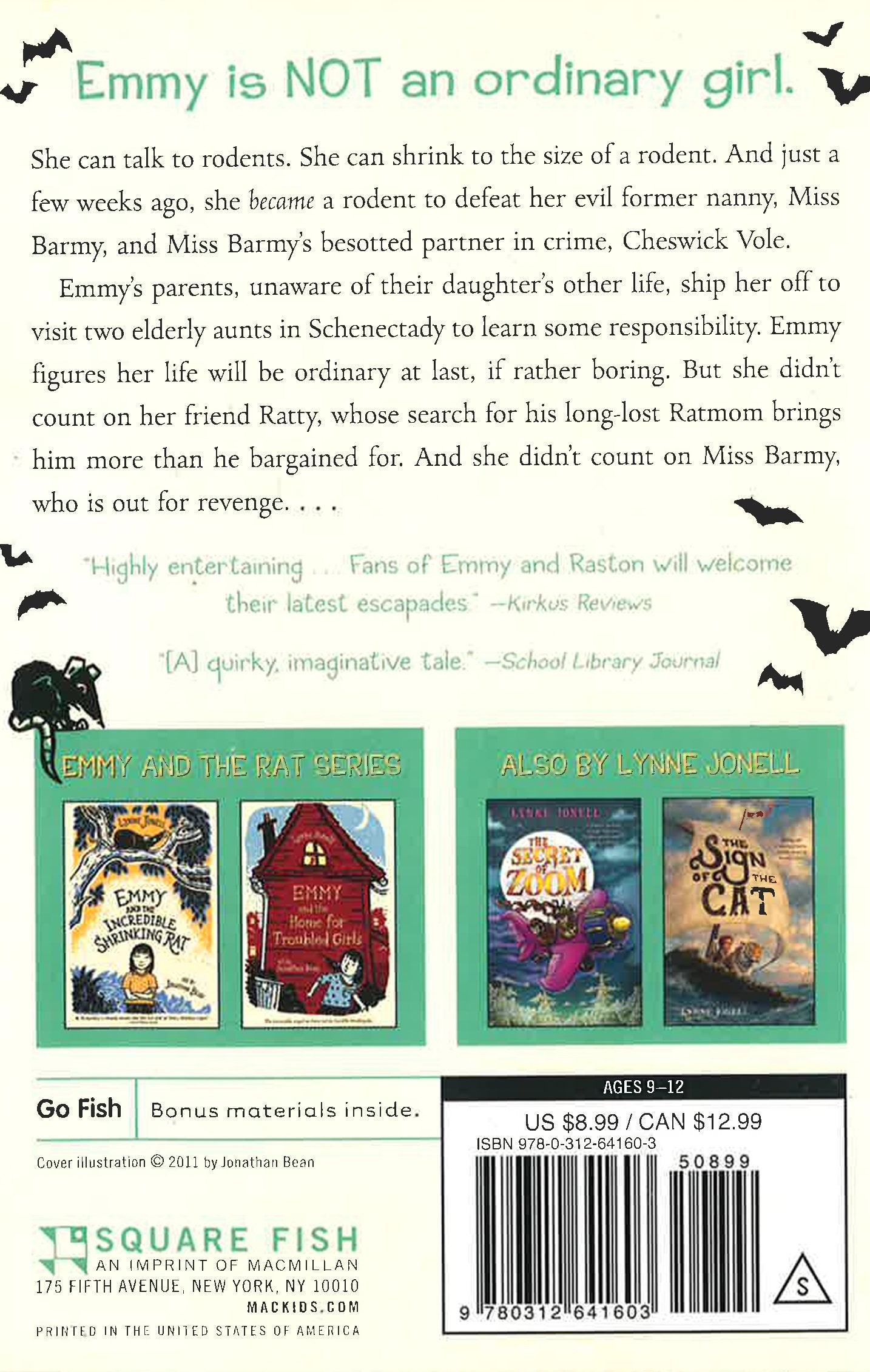 Emmy is not an ordinary girl. She can talk to rodents. She can shrink to the size of a rodent. And just a few weeks ago, she became a rodent to defeat her evil former nanny, Miss Barmy, and Miss Barmy's besotted partner in crime, Cheswick Vole.Emmy's parents, unaware of their daughter's other life, ship her off to visit two elderly aunts in Schenectady to learn some responsibility. Emmy figures her life will be ordinary at last, if rather boring. But she didn't count on her friend Ratty, whose search for his long-lost Ratmom brings him more than he bargained for. And she didn't count on Miss Barmy, who is out for revenge. . . .