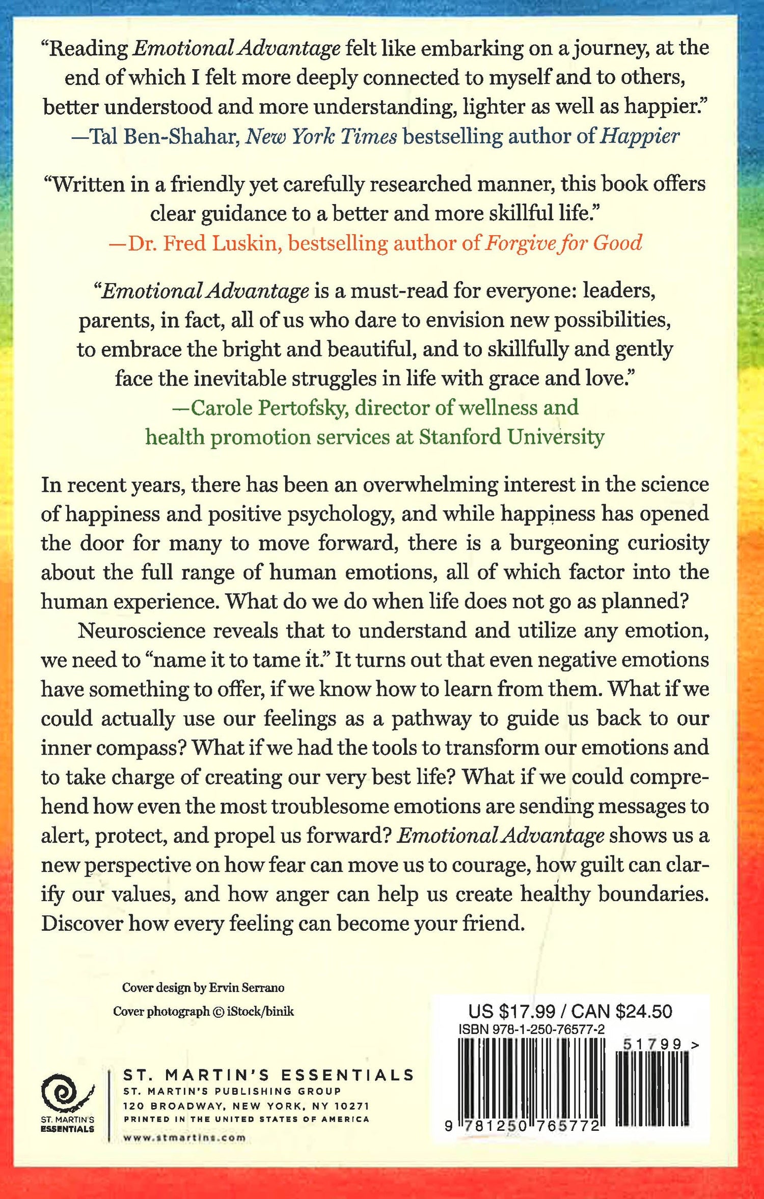 In recent years, there has been an overwhelming interest in the science of happiness. Happiness is a core, universal human drive, which has opened the door for many to go forward. It's easy to welcome happiness, but life can be messy with other feelings we would really rather avoid. The good news is we are born with a full range of human emotions for a reason. Every emotion carries information we can use to improve our lives, and anyone can do so, if we know how. Now in paperback, Emotional Advantage shows us a new perspective on how fear can move us to courage, how guilt can clarify our values, and how anger can help us create healthy boundaries. By becoming emotionally literate, and discovering simple strategies for daily life, we open the door to positive change. Award-winning author, producer, and founder of Project Happiness, Randy Taran knows that every emotion, feeling, and mental state has the power to help us increase our self-awareness, raise our confidence, and bring us back to our true essence. Emotional Advantage is a toolkit to help us take charge of creating our very best life.