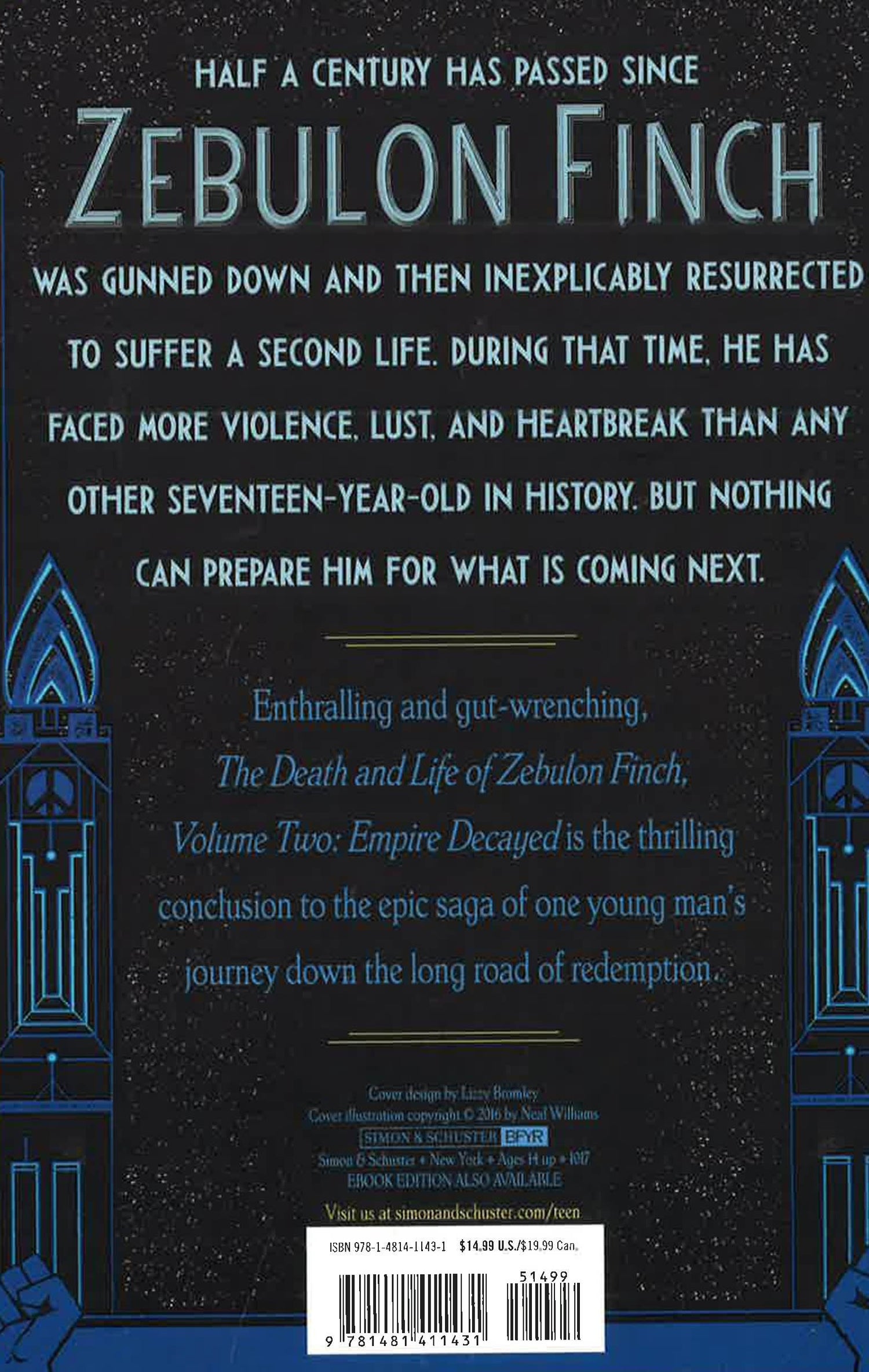 Half a century has passed since Zebulon Finch was gunned down and then inexplicably resurrected to suffer a second life. During that time, he has faced more violence, lust, and heartbreak than any other seventeen-year-old in history. But nothing can prepare him for what is coming next.Enthralling and gut-wrenching, The Death and Life of Zebulon Finch, Volume Two: Empire Decayed is the thrilling conclusion to the epic saga of one young man's journey down the long road of redemption.