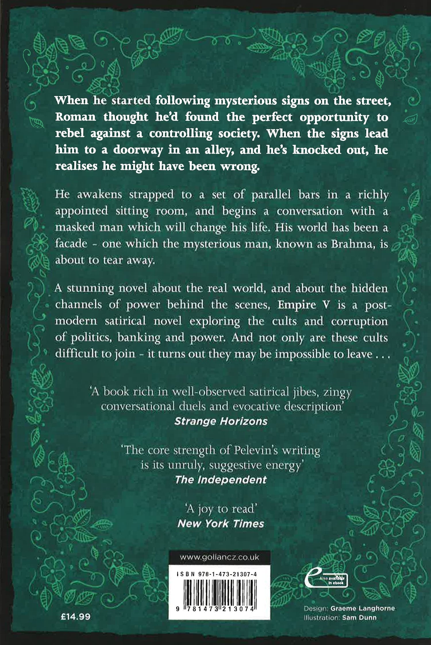 Roman thought he'd found the perfect opportunity to rebel. He may have been wrong. He awakens strapped to a set of parallel bars in a richly appointed sitting room, and begins a conversation with a masked man which will change his life. His world has been a facade - one which the mysterious Brahma is about to tear away. A stunning novel about the real world, and about the hidden channels of power behind the scenes, EMPIRE V is a post-modern satirical novel exploring the cults and corruption of politics, banking and power. And not only are these cults difficult to join - it turns out they may be impossible to leave . . .