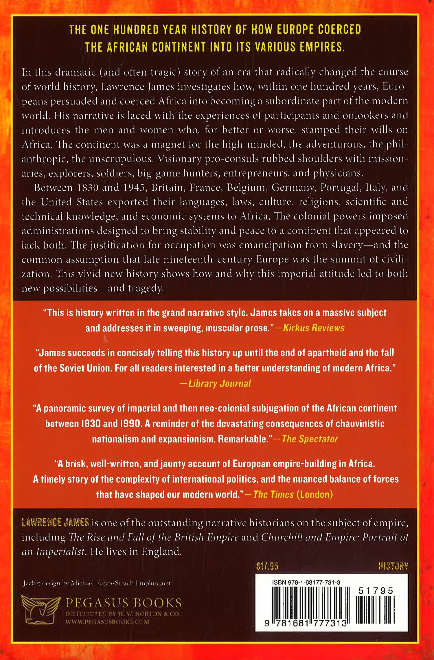 In this dramatic (and often tragic) story of an era that radically changed the course of world history, Lawrence James investigates how, within one hundred years, Europeans persuaded and coerced Africa into becoming a subordinate part of the modern world. His narrative is laced with the experiences of participants and onlookers and introduces the men and women who, for better or worse, stamped their wills on Africa. The continent was a magnet for the high-minded, the adventurous, the philanthropic, and the unscrupulous.Between 1830 and 1945, Britain, France, Belgium, Germany, Portugal, Italy and the United States exported their languages, laws, culture, religions, scientific and technical knowledge and economic systems to Africa. The colonial powers imposed administrations designed to bring stability and peace to a continent that appeared to lack both. The justification for occupation was emancipation from slavery--and the common assumption that late nineteenth-century Europe was the summit of civilization.By 1945 a transformed continent was preparing to take charge of its own affairs, a process of decolonization that took a quick twenty years. This magnificent history also pauses to ask: what did not happen and why?