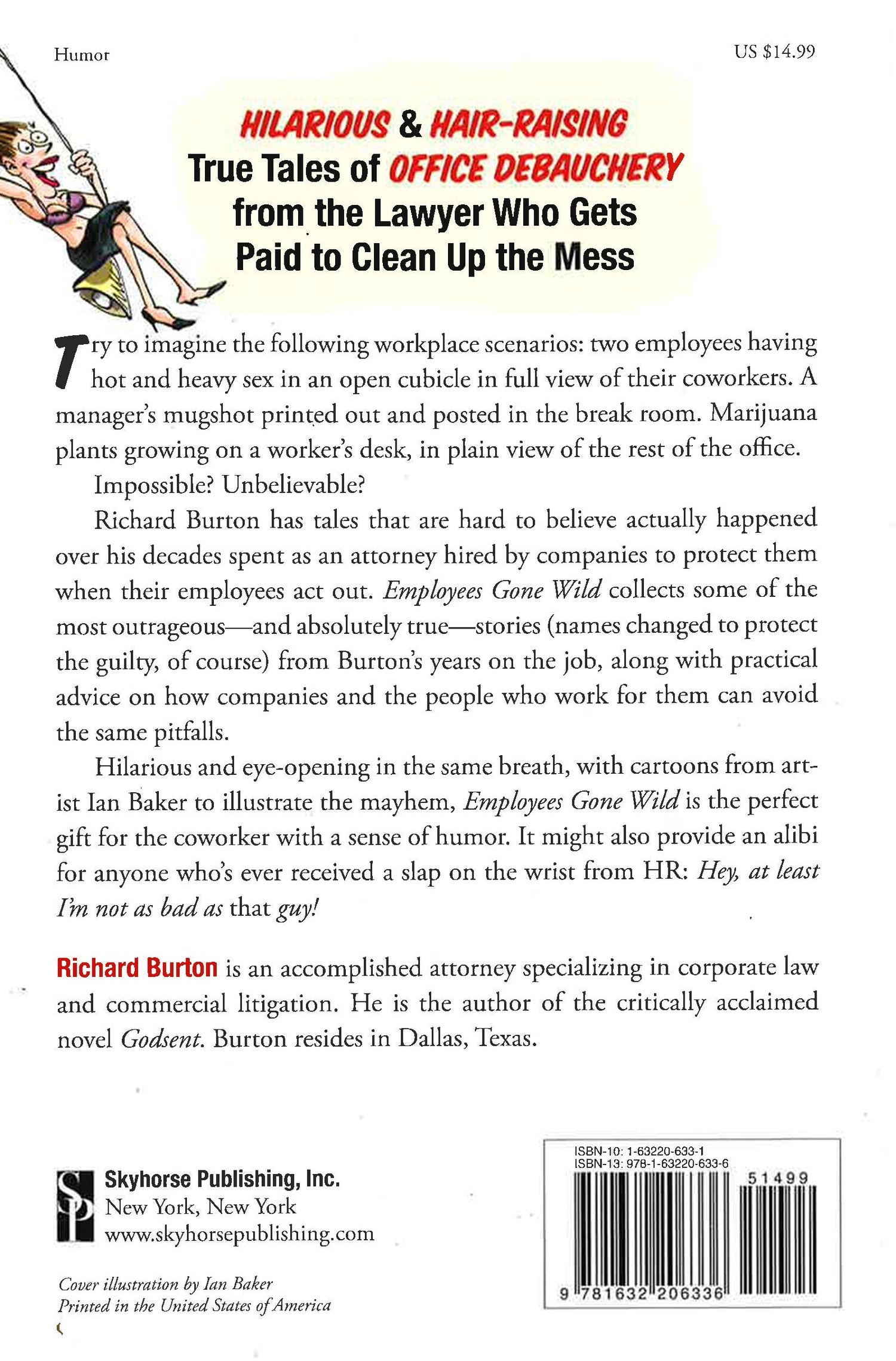 Hilarious and hair-rising true tales of office debauchery from the lawyer who gets paid to clean up the mess. Try to imagine the following workplace scenarios: two employees having hot and heavy sex in an open cubicle in full view of their coworkers. A manager's mugshot printed out and posted in the break room. Marijuana plants growing on a worker's desk, in plain view of the rest of the office. Impossible? Unbelievable? Richard Burton has tales that are hard to believe actually happened over his decades spent as an attorney hired by companies to protect them when their employees act out. Employees Gone Wild collects some of the most outrageous and absolutely true stories (names changed to protect the guilty, of course) from Burton's years on the job, along with practical advice on how companies and the people who work for them can avoid the same pitfalls. Hilarious and eye-opening in the same breath, with cartoons from artist Ian Baker to illustrate the mayhem, Employees Gone Wild is the perfect gift for the coworker with a sense of humor. It might also provide an alibi for anyone who's ever received a slap on the wrist from HR: Hey, at least I'm not as bad as that guy!
