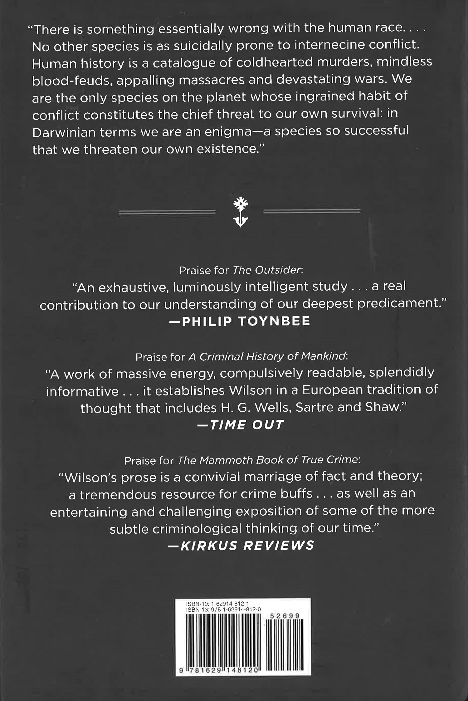 Human beings have always been cruel, savage, and murderous. Is that all about to change? Human history can be seen as a catalog of coldhearted murders, mindless blood feuds, appalling massacres, and devastating wars. Creatively and intellectually, there is no other species that has ever come close to equaling humanity's achievements, but neither is any other species as suicidally prone to internecine conflict. We are the only species on the planet whose ingrained habit of conflict and perpetual warfare constitutes the chief threat to our own survival. In An End to Murder, the Wilsons assess whether human beings are in reality as cruel and violent as is generally believed. The book explores the possibility that humankind is on the verge of a fundamental change: that we are about to become truly civilized. Covering a wide-reaching history of violence from the first hominids to the twenty-first century, the book touches on key moments of change while also indicating where things have not changed since the Stone Age. It follows the history of violence from fifteenth-century baron Gilles de Rais ("Bluebeard"), the first known and possibly most prolific serial killer in history; to Victorian domestic murder, the invention of psychiatry, Sherlock Holmes, and the invention of forensic science; the fifteenth-century Taiping Rebellion in China, in which more than twenty million died; World Wars I and II; more recent genocides and instances of "ethnic cleansing"; and contemporary terrorism. As well as offering an overview of violence throughout our history, the authors explore the latest psychological, forensic, and social attempts to understand and curb modern human violence.