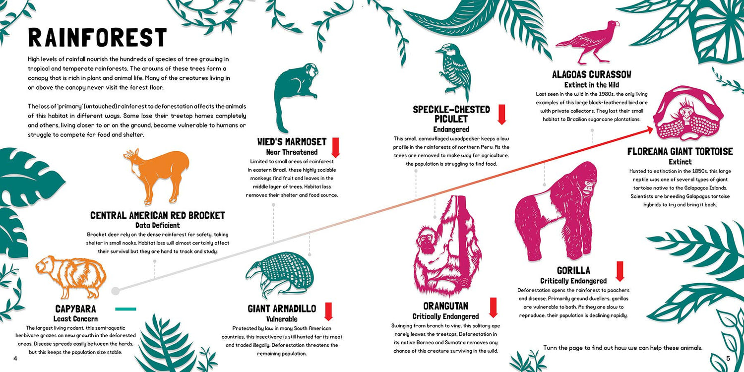 The world’s biodiversity is declining…but there are positive stories to be told! From rainforests to deserts and polar regions to open oceans, read about living things that are extinct, those that are endangered and a handful that are even thriving. Then discover what you can do to help. Hope is not lost!